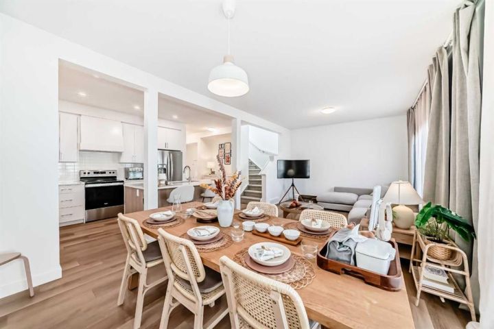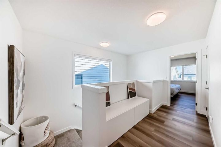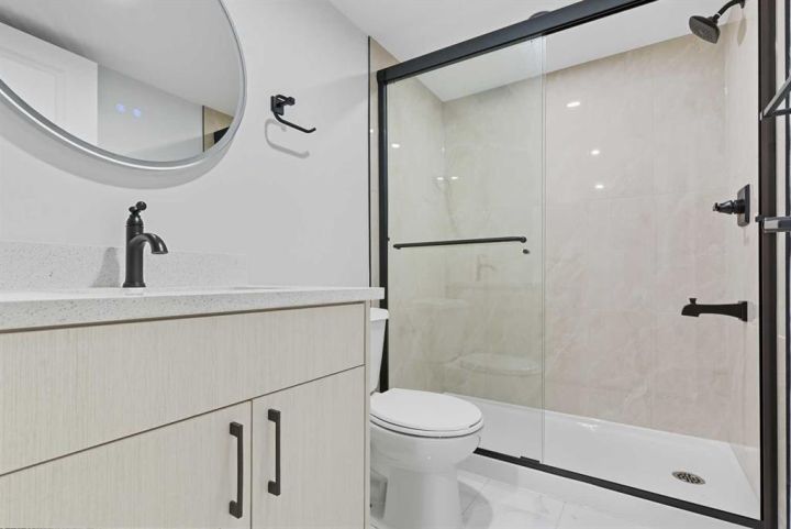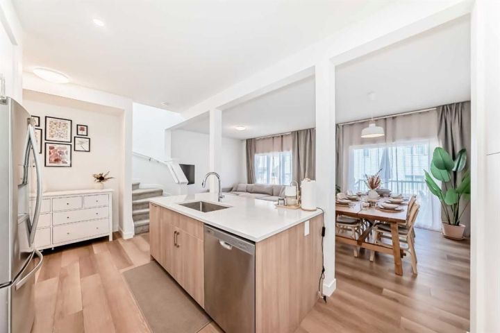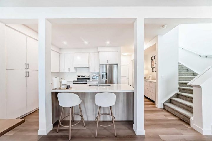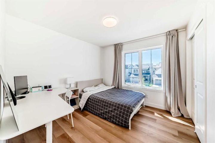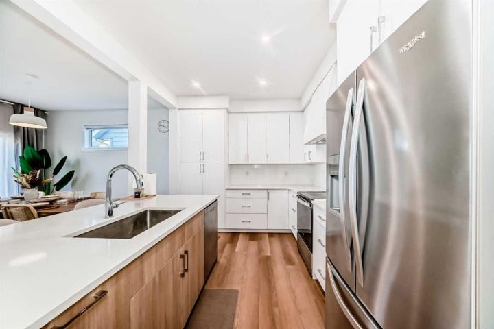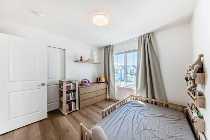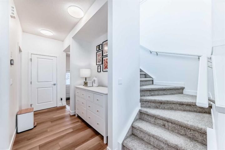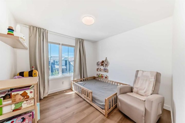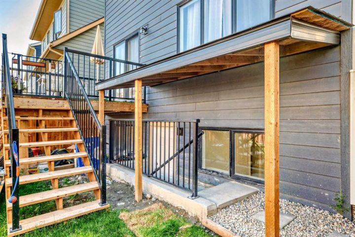 This impressive two-storey home in Wildflower offers the perfect blend of modern design and income potential with its walk-up legal basement suite. With over 1,650 sq ft above grade, the main home features an open-concept layout designed for family living and entertaining. The central kitchen boasts stone counters, an island with seating, and flows seamlessly into the dining and living areas. Upstairs, the primary bedroom is a private retreat with a large walk-in closet and spa-inspired ensuite with dual vanities, alongside two additional bedrooms, a full bath, and convenient upper-level laundry. Set on a sunshine lot backing onto green space, the home is filled with natural light and offers a rear deck for outdoor enjoyment. The walk-up basement legal suite is a standout feature, providing its own private entrance, full kitchen, living room, spacious bedroom, full bath, and laundry. Whether you’re looking for a mortgage helper, a space for extended family, or an attractive rental opportunity, this legal suite delivers versatility and value. Additional highlights include high ceilings, smart home features, an attached double garage,. With schools, shopping, and parks nearby, this property combines comfort, convenience, and financial flexibility—making it a rare find in Airdrie. The basement suite is currently listed for rent.
