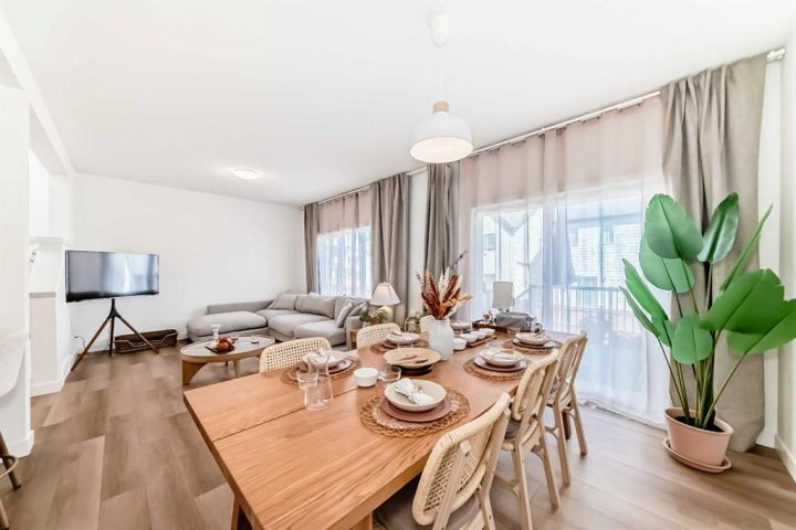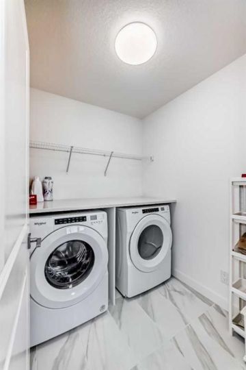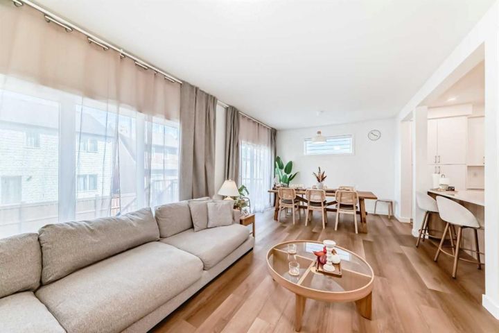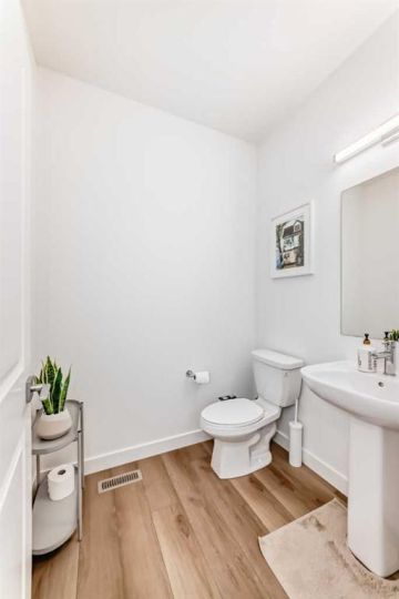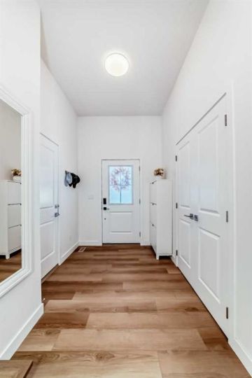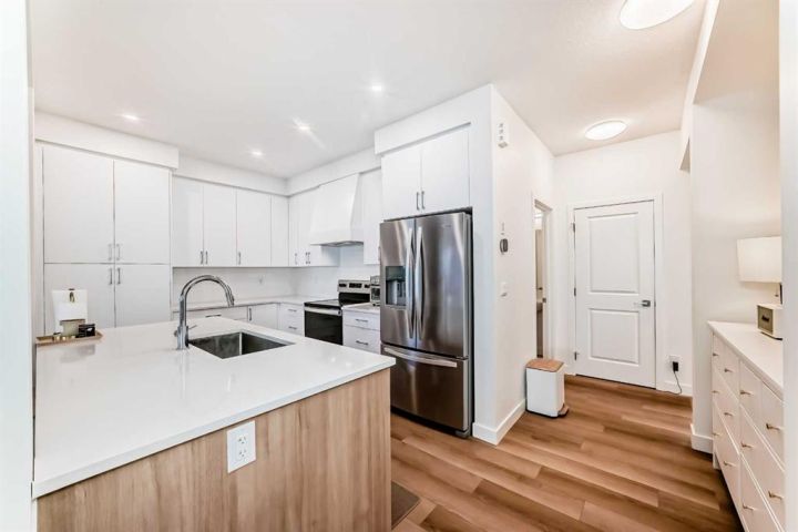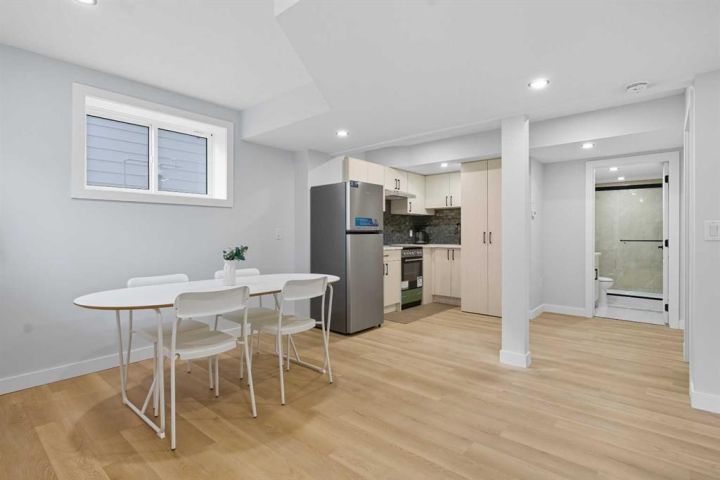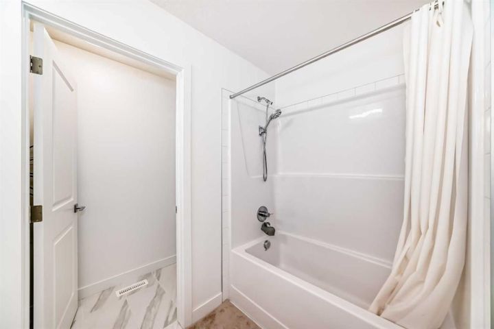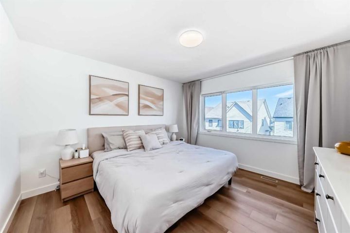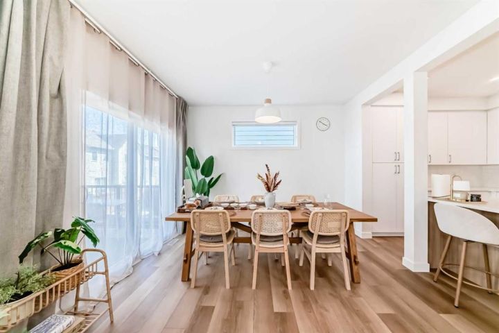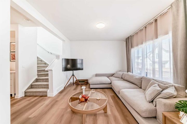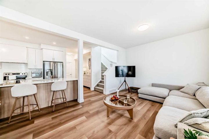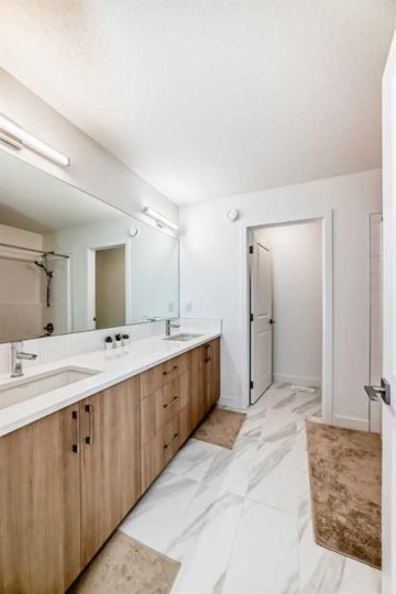 This impressive two-storey home in Wildflower offers the perfect blend of modern design and income potential with its walk-up legal basement suite. With over 1,650 sq ft above grade, the main home features an open-concept layout designed for family living and entertaining. The central kitchen boasts stone counters, an island with seating, and flows seamlessly into the dining and living areas. Upstairs, the primary bedroom is a private retreat with a large walk-in closet and spa-inspired ensuite with dual vanities, alongside two additional bedrooms, a full bath, and convenient upper-level laundry. Set on a sunshine lot backing onto green space, the home is filled with natural light and offers a rear deck for outdoor enjoyment. The walk-up basement legal suite is a standout feature, providing its own private entrance, full kitchen, living room, spacious bedroom, full bath, and laundry. Whether you’re looking for a mortgage helper, a space for extended family, or an attractive rental opportunity, this legal suite delivers versatility and value. Additional highlights include high ceilings, smart home features, an attached double garage,. With schools, shopping, and parks nearby, this property combines comfort, convenience, and financial flexibility—making it a rare find in Airdrie. The basement suite is currently listed for rent.