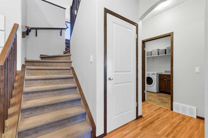 Welcome to 155 Sunset Close, a beautifully maintained four-bedroom, three-and-a-half-bathroom family home with a spacious double-attached garage, tucked away on a quiet, family-friendly street in the desirable community of Sunset. Perfectly located in the lower part of Sunset, this home offers less traffic, quick and easy access in and out of the community, and is surrounded by parks, walking paths, and biking trails. Families will appreciate being within the school districts of Ranch View Elementary and St. Timothy Catholic High School, making day-to-day life both convenient and connected. From the moment you step inside, you’ll notice the abundance of natural light pouring through the large south-facing windows, creating a warm, welcoming, and inviting atmosphere throughout the home. The main living area features a cozy gas fireplace and open spaces designed for both everyday living and entertaining. The fully developed walkout basement is a true showstopper, complete with a huge projector screen and projector system included in the sale—an incredible space to host movie nights, watch the big game, or create the ultimate family hangout. Outside, the backyard is a private retreat with a full privacy wall and mature trees, offering both shade and seclusion. It’s the perfect space for children to play, pets to run, or for relaxing and entertaining in a peaceful setting. The mature yards in this part of Sunset provide a rare sense of privacy, and with no HOA fees, you can enjoy all the benefits of the neighborhood without the extra costs. With its ideal location, family-focused layout, bright natural light, and one-of-a-kind entertaining spaces, 155 Sunset Close is more than just a house—it’s a place to call home.
