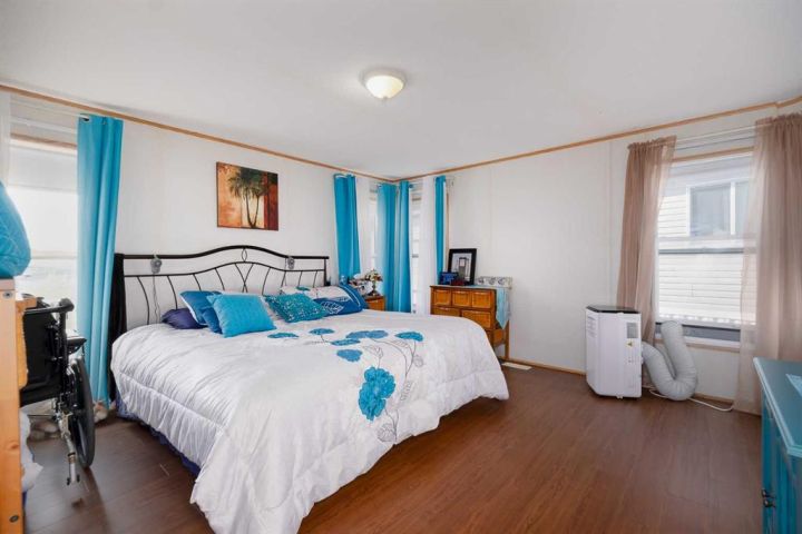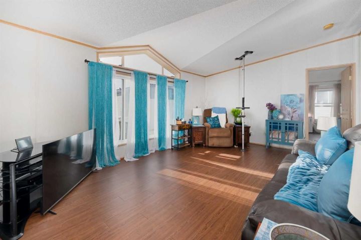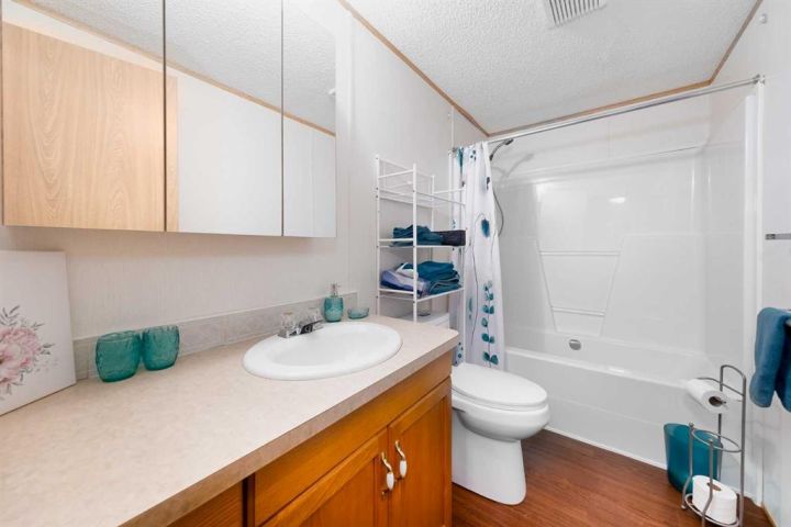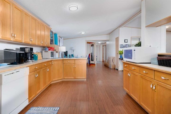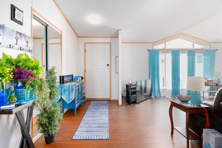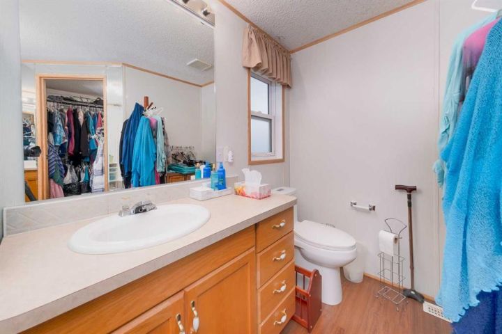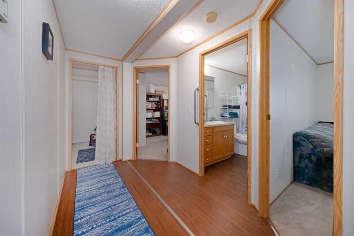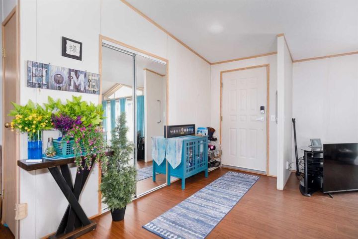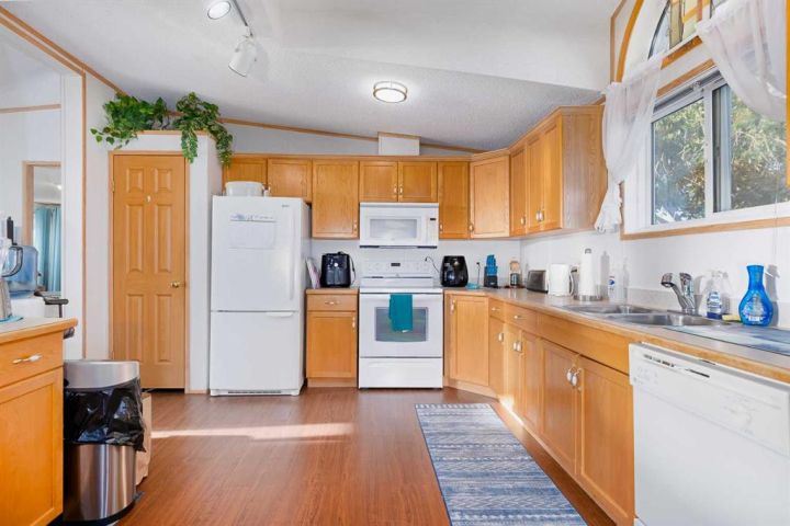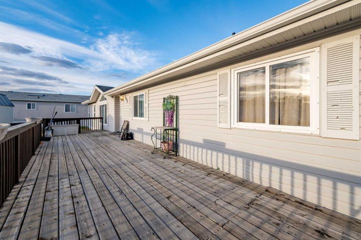 Nestled in the very desirable Ranch Estates, 55+ gated community, is 245 Ranchwood Lane. Over 1700 sqft DOUBLE WIDE home featuring 3 large bedrooms + office/den, 2 full bathrooms including the very large 6 piece en-suite w/ walk-in closet, huge rear deck and front porch, and a very large kitchen with endless counter space. This home has space – lots of it and is move in ready! This bright and sunny, well maintained home has an open concept floor plan which thoughtfully prioritizes comfort and accessibility throughout. Retreat to the rear deck backing onto green space and trees, spacious enough for a large arrangement of patio furniture and barbecue. A brand new, 5.5 x 8 ft shed is included for your convenience on the rear deck as well. Close to important amenities like grocery stores, hardware stores, restaurants, the hospital, and adjacent to Strathmore’s canal walking path AND Strathmore’s beautiful Kinsmen park! Don’t miss this chance to own one of the largest homes situated in the coveted Ranch Estates community.