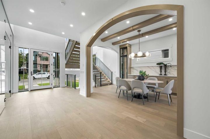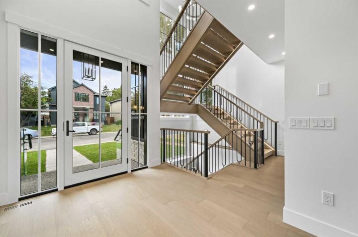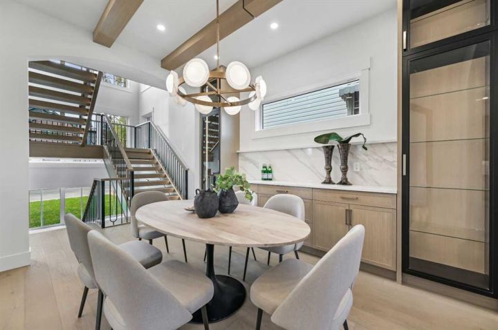 Sophisticated Luxury Living in Richmond Welcome to this exceptional single-family residence located in the highly sought-after community of Richmond. Thoughtfully designed with exquisite details and a functional layout, this home offers the perfect balance of modern elegance and everyday comfort. The main floor sets the tone with a grand open-to-below foyer that creates a striking first impression. A sleek glass-walled office provides the ideal space for working from home. The open-concept living area is perfect for entertaining, featuring a spacious living room, a gourmet kitchen with premium built-in JennAir appliances, a stylish dining area, a well-organized mudroom, and a convenient powder room. Upstairs, the luxurious primary suite is a true retreat, complete with a private coffee bar, a spa-inspired ensuite with a steam shower, and an expansive walk-in closet with a built-in makeup desk. A bonus room adds flexibility for family living, while two additional bedrooms—each with their own ensuite—provide comfort and privacy for everyone. A well-appointed laundry room completes the upper level. The fully finished basement expands the living space with an open recreation area, a dedicated games zone with a wet bar, a private gym, a spacious bedroom, and a full bathroom—perfect for guests and entertaining. Ideally situated in one of Calgary’s most desirable inner-city neighborhoods, this remarkable home combines luxury finishes with unparalleled convenience, just minutes from parks, schools, shopping, and downtown.