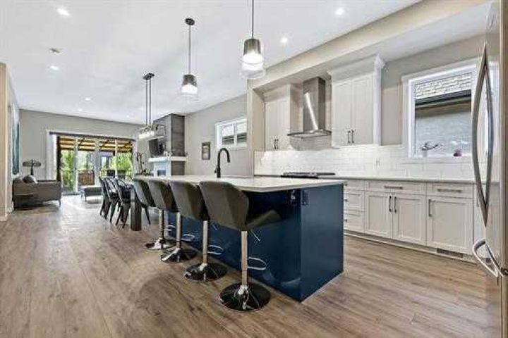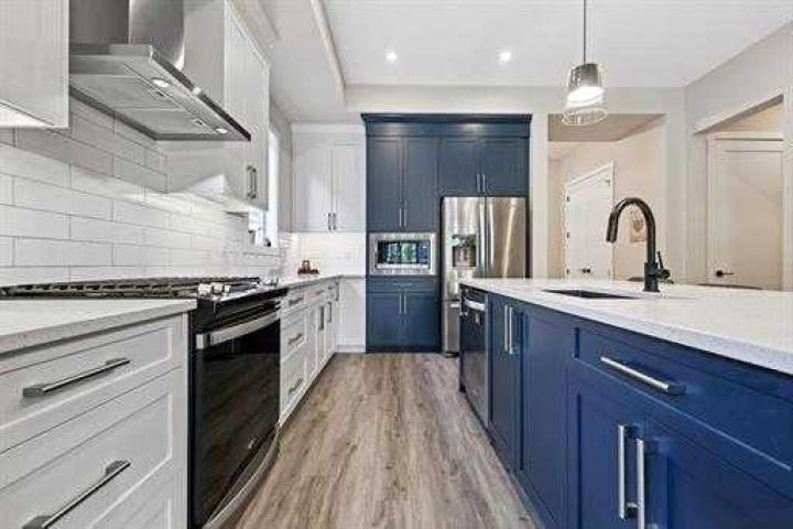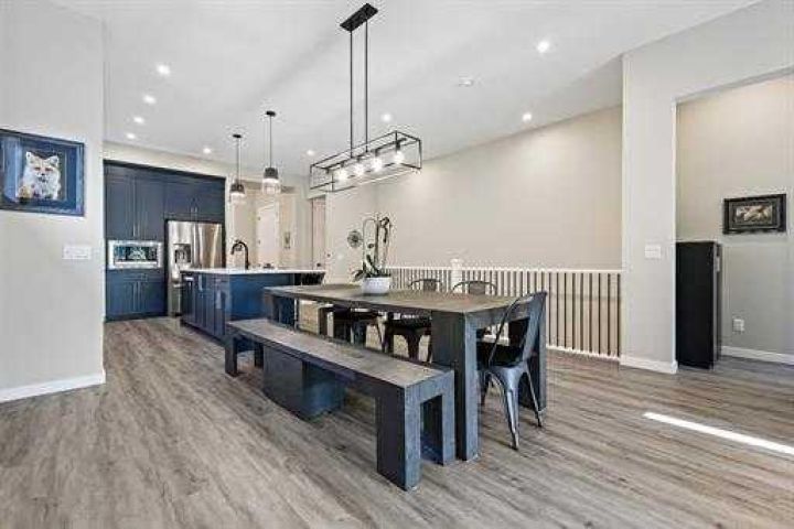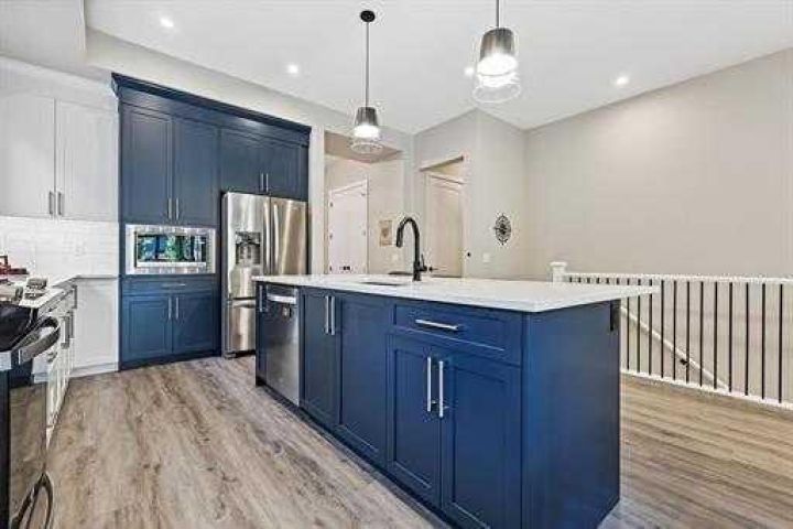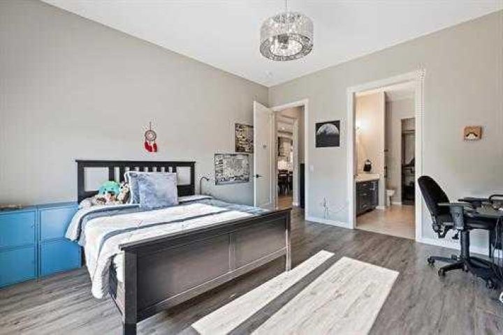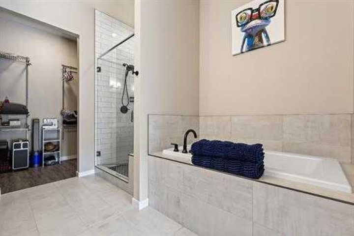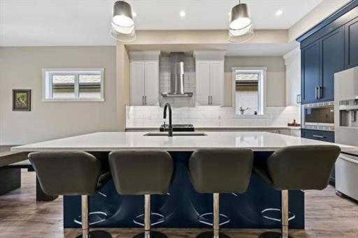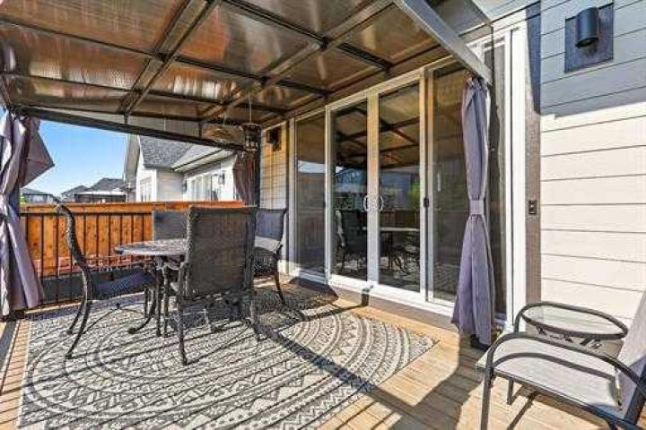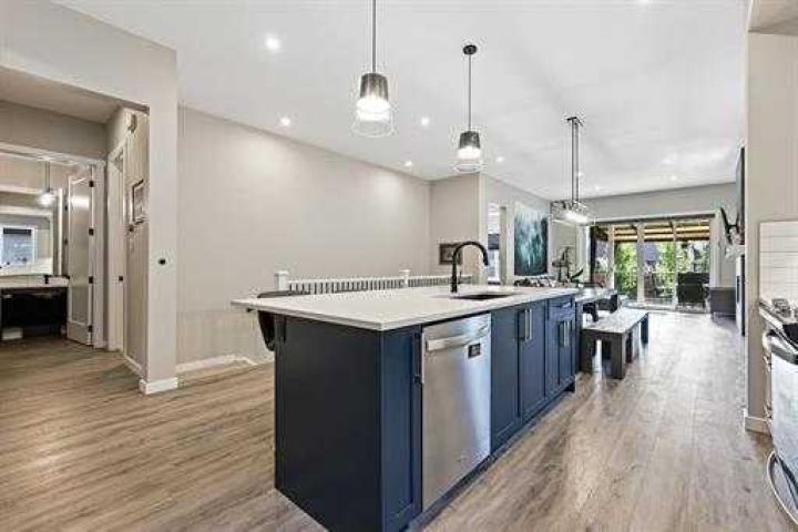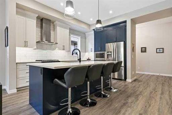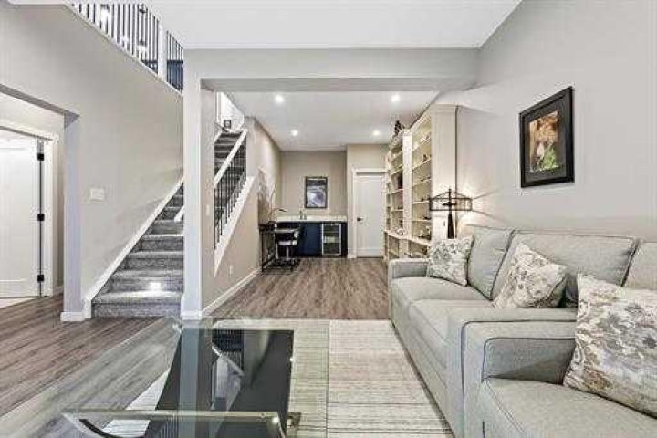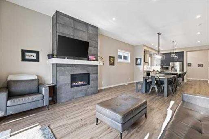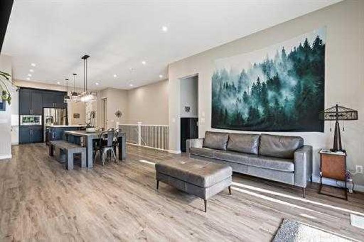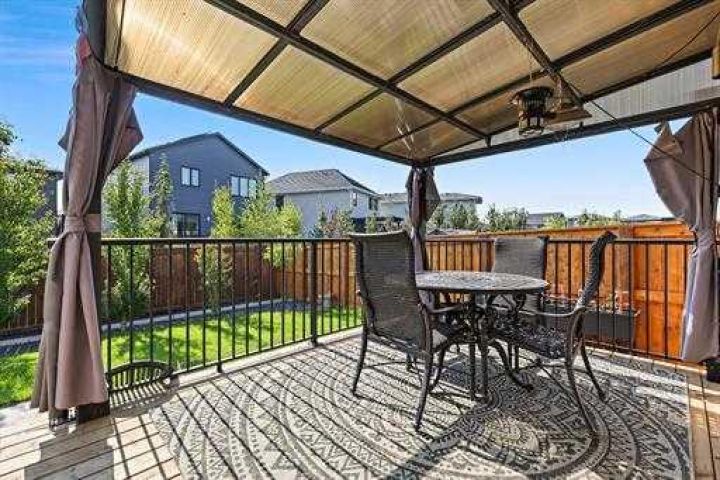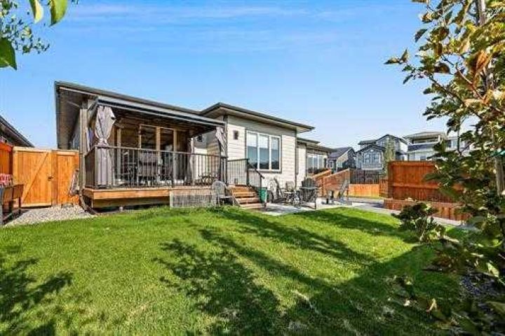 A Luxury Bungalow in the Heart of Cranston! Prepare to be absolutely captivated by this attached bungalow, a residence that perfectly balances refined elegance, modern comfort, and thoughtful design. Located in the highly sought-after community of Cranston, this remarkable home offers a lifestyle of ease and sophistication while being surrounded by nature and community amenities. To make this property even more unique, the attached unit next door has been fully customized for assisted mobility, presenting an exceptional opportunity for multigenerational living while maintaining privacy and independence for everyone. The open and airy main floor boasts soaring 10 ft. ceilings, warm luxury vinyl plank flooring, and grand 8’ doors that enhance the sense of space. The heart of the home is undeniably the kitchen, a stunning culinary haven that blends functionality with beauty. Thoughtfully designed with quartz countertops, elegant two-toned cabinetry and premium appliances, it’s a space that will inspire everything from casual family meals to gourmet creations. The spacious dining area is perfectly positioned for gathering with loved ones, while the adjacent living room is a showpiece in itself, featuring a striking gas fireplace that radiates warmth and charm. Remote-controlled blinds add both convenience and a sleek modern touch to the space. The primary suite is a private sanctuary, designed to offer rest and relaxation at the end of the day. The spa-like has dual vanities, a luxurious soaker tub, and an oversized walk-in shower and adjoining walk-in closet that exudes sophistication. The main floor is completed by a stylish 2-piece powder room, a well-appointed laundry area, and a mud room that connects directly to the oversized double attached heated garage, blending practicality with everyday comfort. The lower level is just as impressive, designed to be both inviting and versatile. A sprawling recreation area provides endless possibilities for relaxation or play, while a dedicated games and bar space featuring a full wet bar creates the perfect setting for entertaining. Three generously sized bedrooms, each with their own walk-in closets, offer comfort and privacy for guests or family members, and a beautifully finished 4-piece bathroom ties the space together with elegance and style. Step outside and discover your personal backyard retreat. The west-facing yard is thoughtfully landscaped and designed for enjoyment, featuring a large deck ideal for summer gatherings, a charming gazebo for shaded lounging, and raised garden boxes that bring a touch of greenery and colour to the space. With central air conditioning to keep the home cool on warm summer days, every season here will feel just right. This home is ideally situated just steps from the picturesque walking paths along the Bow River, and as a resident you’ll have full access to Cranston’s vibrant Community Hall, complete with a splash park, skate park, hockey rink, tennis courts, and so much more.