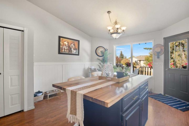 Welcome to this beautiful 5-bedroom home set on a large, private lot surrounded by mature trees and birdsong—offering the tranquility of country style living with the convenience of town amenities. And best of all, there are no sidewalks to shovel in the winter! Inside, you’ll find a bright and inviting main floor with vaulted ceilings that create a sense of openness and generate natural light throughout. There's plenty of cupboard space, a large pantry area, and good looking stainless steel appliances in the kitchen. The kitchen island is a great gathering spot for friends and family. Upstairs, the spacious master bedroom provides plenty of room for relaxation. Two additional bedrooms, a refreshed full bathroom with large vanity, and a dedicated laundry room complete the upstairs. You'll appreciate the all-in-one washer/dryer combo that adds convenience, saved space, and efficiency to your laundry tasks. The lower two levels feature a recently finished 2-bedroom, 1-bathroom basement suite (illegal) - perfect for extended family and guests. With a separate entrance on the North (backyard) side of the house and back lane parking, this suite is in demand in today's tough-to-find-a-decent rental world. It contains its own kitchen with stainless steel appliances, sizeable living room area, two bedrooms, an updated bathroom, extra storage, and a separate laundry area with washer and dryer. Some of the updates throughout the home include flooring, paint, countertops, and tile. All appliances on the main levels and in the suite are included in the sale. 61 Pickwick Lane is ideally situated on a desirable City of Lacombe/English Estates lot with a peaceful country feel - offering plenty of space to play, garden, or simply relax with friends and family. The natural gas bbq on the two-tiered deck, the shed, and garden boxes are included. You’ll be pleased with the double garage for secure parking and extra storage. The driveway and backyard pad provide additional parking for vehicles, work trailers, RVs, and/or other toys. English Estates is quiet, safe, and ideally located near shopping, coffee, restaurants, playgrounds, parks, ball diamonds, schools. It is also connected to Lacombe's excellent walking/biking trail system. The home offers quick access to the primary roads of Alberta (Highways 2A and the QEII) - making commuting a breeze.. This home offers space, versatility, and natural beauty—everything you’ve been looking for.