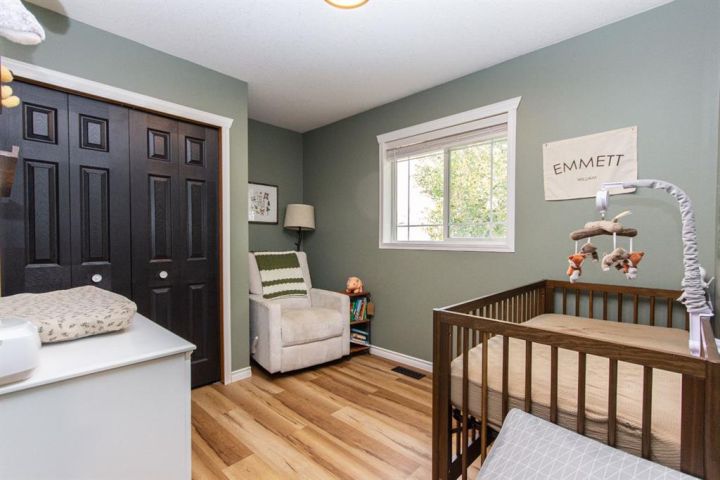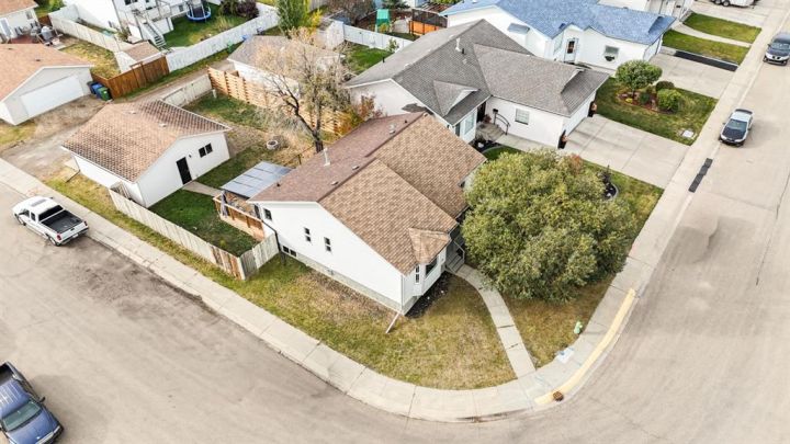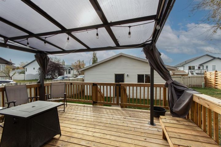 Welcome to this fully finished bungalow with a double detached garage. Step into the front entry that opens to a welcoming living room with hardwood floors and views of the front yard. The floor plan flows into the dining area and kitchen, where you’ll find an eating bar, pantry, plenty of cabinet space, and easy access to the large back deck for summer BBQs. Down the hall, the primary bedroom offers dual closets, alongside two additional bedrooms, one with washer/dryer hookups in the closet and a 4-piece bathroom. The fully finished basement expands your living space with a spacious family room featuring a cozy gas fireplace, a fourth bedroom, a second 4-piece bathroom, and a large laundry/storage room. Enjoy your private, fully fenced backyard featuring a double detached garage, a convenient rear gate for RV parking, and even a removable dog run off the deck, perfect for pets or flexible yard use. This 4-bed, 2-bath bungalow is move-in ready and offers everything your family needs in a great location.