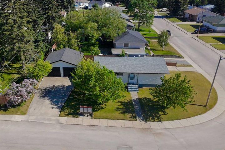 A solid 4 bedroom mill home with a double detached garage and two large concrete drive ways. The main floor consists of a bright front living room, kitchen with large pantry, and a dining nook. In addition, there's a full bath and 3 bedrooms on this level. The front door leads into the main living area and the back door comes in at the top of the stairs down to the basement - a great layout for someone looking to add a suite. The main level has had fresh paint and the furnace was just serviced. The lower level has a huge family room and rec space, large utility room including laundry, and a 4th bedroom. Outside, the parking at this property is way above average with 2 separate concrete pads, a double detached garage, and plenty of room for toys and an RV. The large yard space has crab apple and choke cherry trees and it fronts onto a quiet, one-way street.