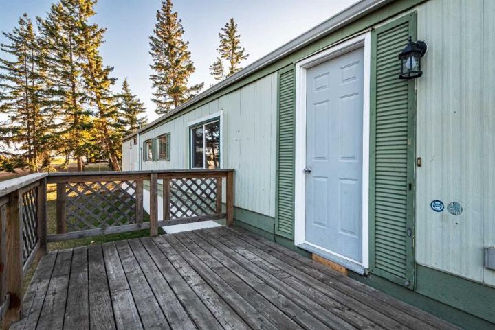 Move in Ready, 3 bedroom 1 bath mobile with many upgrades in the recent 2 years, many this summer, on a rented lot. Home features a bright and functional layout with a spacious living area, refreshed finishes, and a simple kitchen with a bright dining room, a larger primary and 2 more bedrooms of a comfortable size, and the full bathroom has recent updates. .Other upgrades include but are not limited to brand new skirting, new front stairs and lighting and the underbelly has been secured and refreshed with extra insulation, this September, new flooring throughout recently. This mobile is situated in the Trochu Mobile home park, with a very reasonable $330.00 a month lot lease, that covers water, sewer and garbage pick up, within walking distance to the local school, arena, pool, and downtown core as well as the local arboretum and numerous beautiful walking trails.