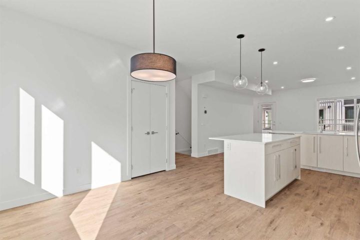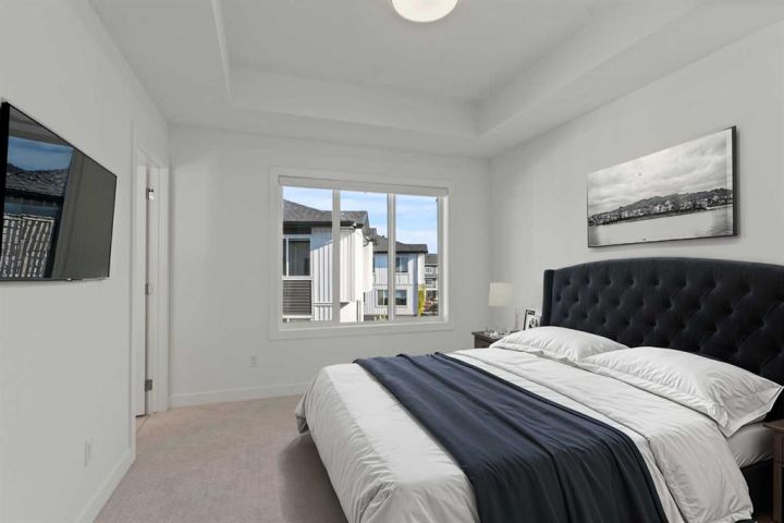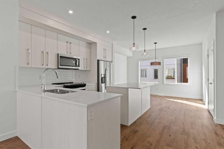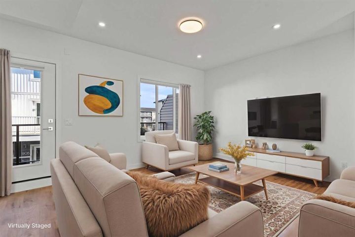 Step into 1,675 sq. ft. of comfort and style in this beautifully appointed home, located in the welcoming community of Chelsea. From the moment you enter, you’ll appreciate the thoughtful layout — including a versatile entry-level bedroom/office, ideal for a home business, playroom, or private guest space. Upstairs, the heart of the home shines with a spacious open-concept design, oversized windows in every room, and a kitchen built for both function and flair. Enjoy sleek quartz countertops, a large double-door reach in pantry, and a massive island filled with dedicated storage — perfect for meal prep, hosting, or gathering with family and friends. Convenience continues with upper-level laundry, a double attached garage, and plenty of natural light throughout. The pet-friendly complex makes this a rare find for animal lovers, while the vibrant neighbourhood offers a true sense of community. Whether you’re entertaining, working from home, or simply relaxing, this property offers the flexibility and features you’ve been looking for. Stylish finishes. Functional design. A home that truly works for you.