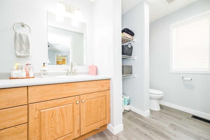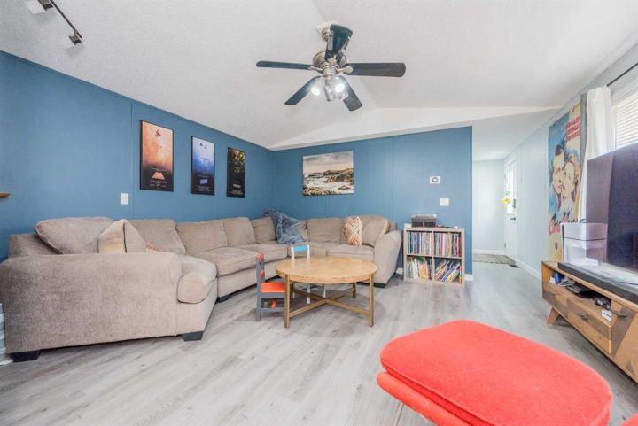 Welcome to this beautifully updated 1,216 sq.ft. modular home situated on its own lot in the family-friendly community of Clairmont—meaning no monthly lot fees! Offering 3 bedrooms and 2 full bathrooms, this home combines comfort, functionality, and recent upgrades that make it truly move-in ready. The bright kitchen features a skylight, a large walk-in pantry, newer fridge, dishwasher, and range hood, along with plenty of storage. Both the kitchen and bathrooms have been refreshed with new faucets, adding to the modern feel. The spacious primary suite offers a relaxing ensuite complete with a jetted tub and linen closet. Additional updates include stylish vinyl plank flooring, fresh paint, trim, updated interior doors, and modern light fixtures throughout. Step outside and enjoy the deck—perfect for morning coffee or evening barbecues. The large driveway provides ample room to park an RV, while the fenced yard and storage shed add extra convenience for outdoor living. For added peace of mind, new skirting has been installed. This home offers excellent value with thoughtful updates, outdoor space, and the bonus of owning your own lot in a growing community. Don’t miss your chance to make it yours!
