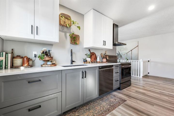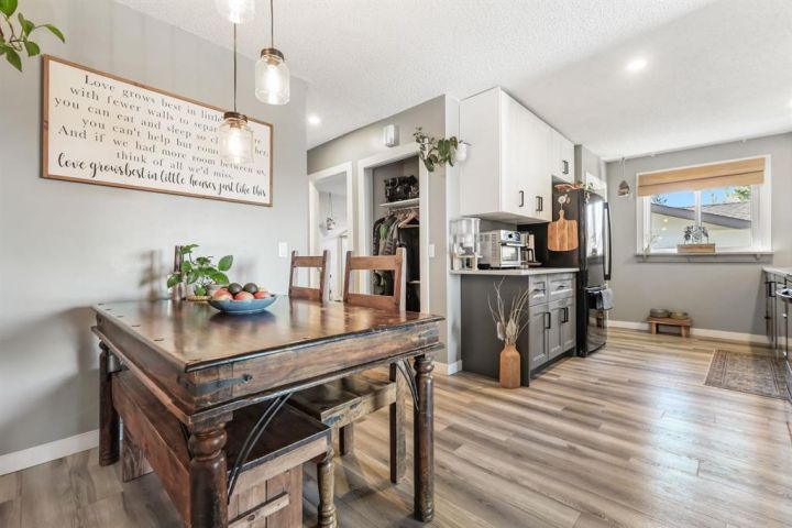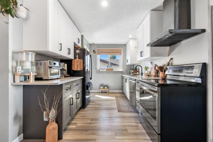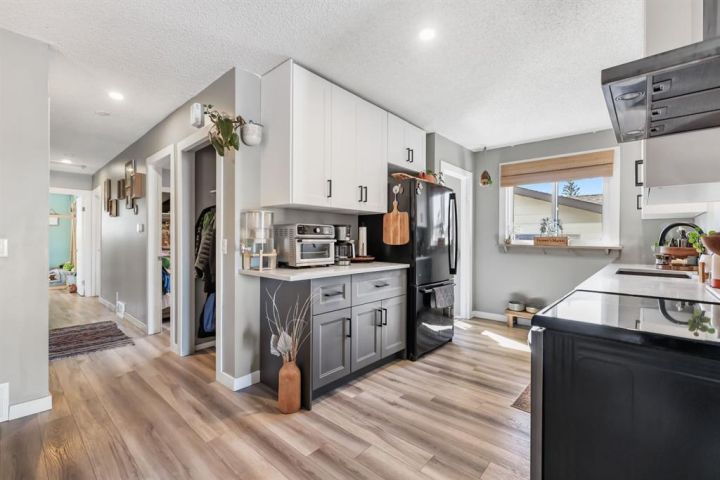 OPEN HOUSE SUNDAY 2-4PM. Welcome home to a cheerful 3-bed, 2-bath raised bungalow offering 1,771+ sq.ft. of developed space and a wonderful Glenbow address. Thoughtfully updated and move-in ready, this home blends comfort with everyday practicality. The main floor welcomes you with a bright front living room—rustic wood feature wall, cozy fireplace, and sliding glass doors that frame those Rocky Mountain views. The renovated kitchen serves as the heart of the home with generous prep space, great storage, and an oversized pantry. Down the hall: a roomy primary bedroom, two additional bedrooms, and an updated 4-pc bath. A handy side door leads to the new side deck—perfect for morning coffee or easy BBQ nights. Downstairs, the spacious family/flex area sets up beautifully for movie nights, a play zone, home gym, or office. You’ll also find a 3-pc bath, laundry, and interior access to the oversized single underdrive garage. Outside, the fully fenced backyard offers plenty of room for kids, pets, and weekend lounging, plus extra parking on the driveway. Recent improvements: renovated kitchen; newer flooring & paint; new roof & windows; refreshed upper bath; exterior paint & front siding; new front door, new side fence, and new side deck. Warm, inviting, and in a walkable location—great value in Glenbow. Come see the possibilities!