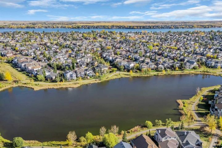Welcome to this beautifully maintained fully finished bungalow offering nearly 1,100 sq ft of comfortable living space — attached only by a garage wall - and with no condo or HOA fees! The main floor features a bright, open layout with two bedrooms and two full bathrooms, including a spacious primary suite complete with a walk-in closet and private en-suite. The kitchen is updated with newer stainless-steel appliances in 2022, and the hot water tank was also replaced in 2022, giving you added peace of mind. Downstairs, the fully developed basement expands your living space with two additional bedrooms and a large recreation room — perfect for family gatherings, a home gym, or movie nights. Set in a quiet cul-de-sac close to schools, parks and a scenic pond, this home offers direct access to Chestermere’s extensive walking paths that wind along the connected ponds and green spaces — perfect for morning jogs or evening strolls. Just two minutes from Lake Chestermere, you’ll enjoy an unbeatable lifestyle surrounded by natural beauty and year-round activities. Spend your summers boating, paddle boarding, or relaxing at the beach, and your winters ice skating on the nearby ponds or enjoying community events on the frozen lake. This home blends comfort, convenience, and the best of Chestermere living — a true opportunity for anyone seeking space, value, and an active outdoor lifestyle in a peaceful neighborhood.