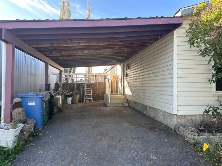 Erin Woods - 150 Erin Woods Circle SE: HANDYMAN SPECIAL - Fixer Upper - SOLD AS IS, WHERE IS. This property offers a chance to own titled land with no condo or pad rental fees. This standard layout modular home features just over 1,200 sq ft with a covered carport and driveway for a total of 2 vehicles. Inside, the layout includes a kitchen with an eating area, a living room, a primary bedroom with a 3-piece ensuite, two additional bedrooms, a 4-piece main bathroom, and a separate laundry room. This home is in a nice location within the park, with a south backyard, 2 decks, and a shed across the street from a park near a walking path. Conveniently located near Peigan Trail, Deerfoot Trail, Stoney Trail, and close to area amenities such as Erin Woods Park, East Twin Arena, and schools. Price reflects its current condition - great potential.