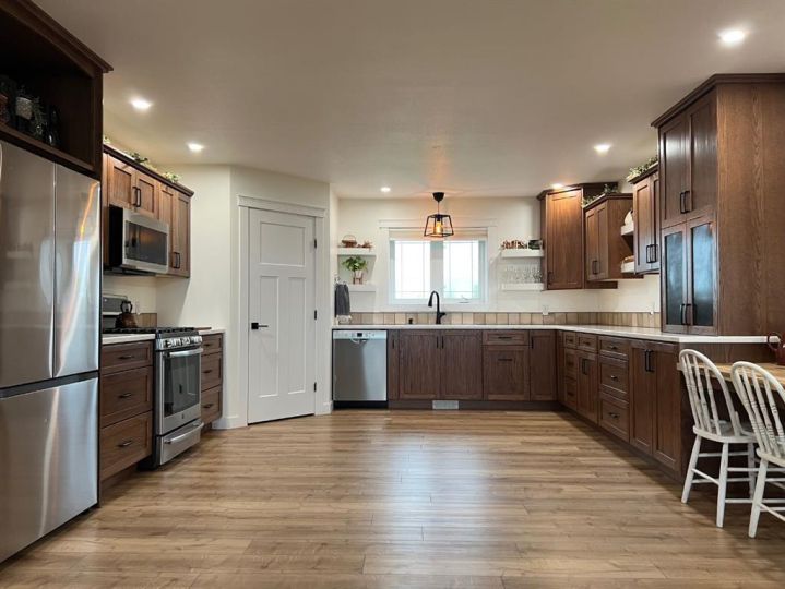 Have you been dreaming of living on an acreage close to Coaldale, AB? Take a closer look at this custom built 2023, 4 bedroom, 3 bathroom, bungalow, with a 28 x 32 double car attached garage, on 2.57 acres! Located 3 miles (5km) east of Coaldale, with only .75 miles (1.2km) of gravel, this home has everything you need for country living. Approaching the property, notice the semi mature trees, well landscaped yard and beautiful home. Come up on the, east facing covered, concrete patio and enjoy the countryside view of fields and blue skies. Enjoy every sunrise whether inside, or out here. Step inside and explore, leaving your shoes and worries behind. This custom home defines well-thought-out. The open concept living room and dining room, features a vaulted ceiling with pot lights and plenty of windows to let in a generous amount of natural light. It’s large but still feels like home. Continuing the open concept, the kitchen features 4 Stainless Steel Appliances, modern lighting, a pantry/prep room, plenty of soft-close cabinets and a window facing the backyard to enjoy the sunsets. Beyond the living room are 3 bedrooms. The 1st bedroom is a good size with a walk-in-closet, the 2nd bedroom is a fair size with a large walk-in-closet and would make a fantastic office, project or baby room. Lastly, the primary bedroom is plenty large enough for a king suite of furniture and features a large walk-in-closet and an ensuite with double sinks and a large tiled step in shower. Moving across the home to towards the garage is a 4th good size bedroom with a walk-in-closet. Here you will also find the access to the basement, the laundry room and the 4 pc main bathroom. In the basement is a fully finished 3rd 4pc bathroom, 2 unfinished bedrooms, with walk-in-closets. There is also a cold room to be finished and a large area for a future family room. Heading out to the large garage, there is plenty of room for 2 full size vehicles and some room to spare. Step out the garage backdoor to the back patio and enjoy the sunsets here, a fire pit, and a fenced wind break. The property also features a horse shelter, close to 2 acres of pasture, a cistern large enough to last 6-9 months, underground sprinklers, and a large garden with great soil. Come and see this beautiful acreage today, only a few minutes from Coaldale, with all the features of country living! It won’t last long!