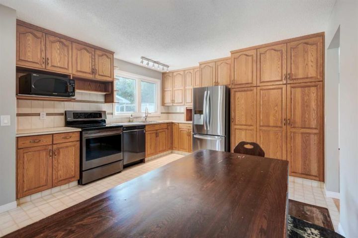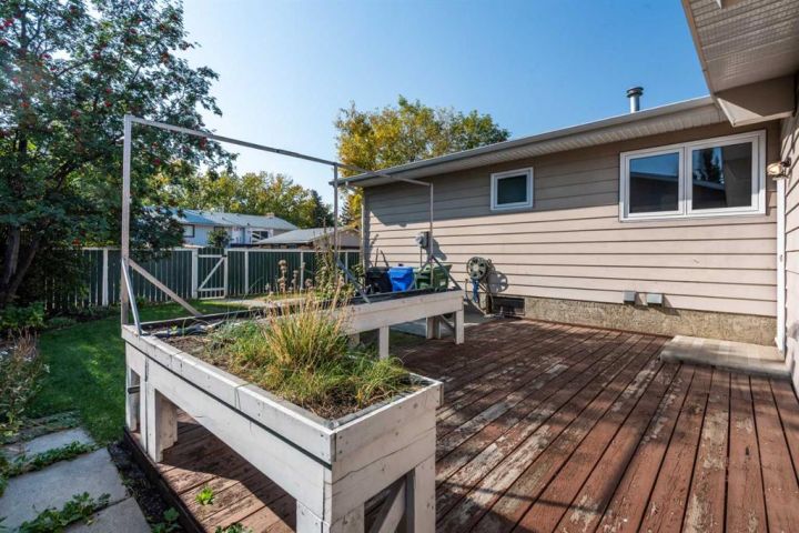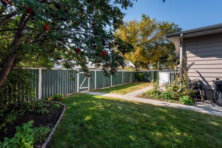 Here's a chance to acquire a nice clean bungalow with a walk up entrance in the rear coming up from the caregivers suite. This home , with its front drive garage has lots of shelving along the walls and opens up to the rear entrance and also taking you to the basement , the back yard , the laundry and then the kitchen . There have been a good number of projects completed over the past few years . All new triple glazed windows on the main floor of the house. New shingles and vents , upgraded insulation in the attic with baffles . newer appliances in the main kitchen and new paint through out . All three bathrooms have been renovated with proper water proof materials behind the tile work . The main bath has some handicap features and the bath down stairs has a jetted tub . From the front entry , you enter into the living room with vaulted ceiling , 3/4 oak flooring with inlay and a brick fire place with mantle which flows into the dining room. You will find pocket doors separating the dining room from the kitchen and hall way and one separating from the front entry to the kitchen . toward the rear are 3 bedrooms , a 3 piece ensuite off the master and a 4 piece main . The kitchen has a generous supply of cabinets and newer appliances . The finished basement has a generous size rumpus room with a stand alone wood burning fire place and a set of oak French doors with beveled glass leading to a TV room and then to a bathroom with a 6 foot jetted tub . You will also find one more bedroom and then a kitchen with all the normal appliances and a washer and dryer thrown in to the mix with a rear entry taking you out. . The back yard is fenced and has a wood deck with a stone walk way leading to the rear entrance . This home has been set up for a senior with care givers living in the basement . PLease call today for a showing