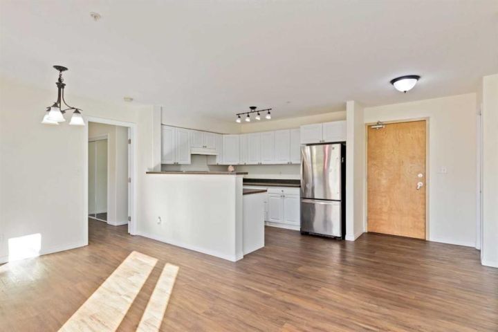Spacious First-Floor Comfort in a Prime Location! Welcome to this bright and functional 3-bedroom, 2-bathroom apartment, perfectly designed for first-time buyers or smart investors. Located on the main floor, this home offers easy access with no stairs and a convenient layout for everyday living. The open-concept design features Luxury Vinly Plank flooring, large windows that fill the space with natural light, and a generous living and dining area that flows into a practical kitchen with ample cabinet storage. Step onto your private patio, ideal for morning coffee or outdoor relaxation, with additional secure storage for your bike or seasonal items. The primary bedroom includes a large closet and private ensuite with a full tub. Two additional bedrooms provide flexibility for guests, family, or a home office. A second full bathroom and in-suite laundry add to the comfort. Extras: unit includes dedicated parking right outside for easy access. Located steps from Eagle Ridge The Commons, enjoy walking distance to the movie theatre, restaurants, pharmacy, parks, trails, schools, and public transit. Move-in ready and full of potential, this main-floor gem offers the lifestyle and convenience you’re looking for.
