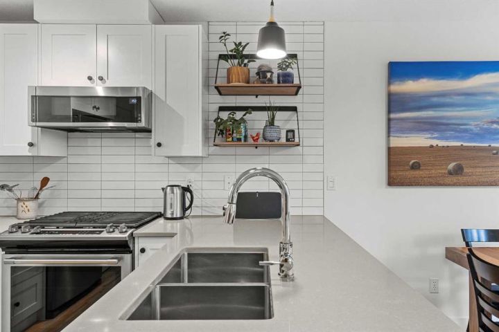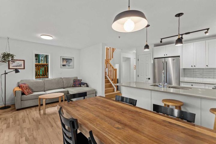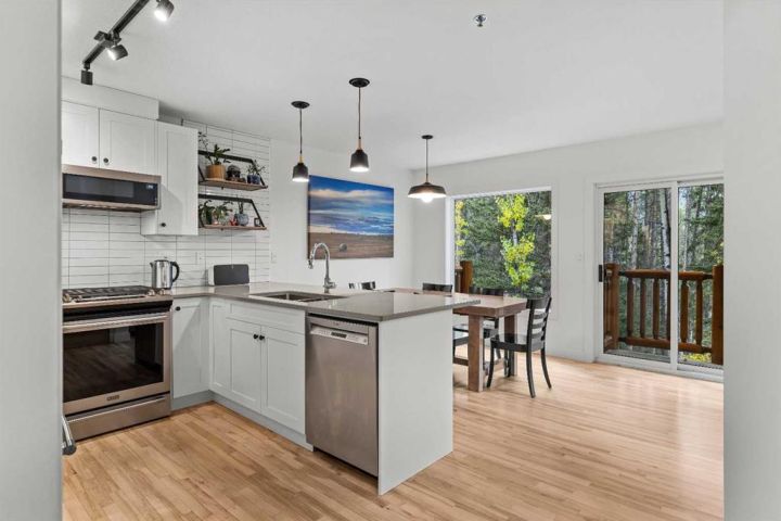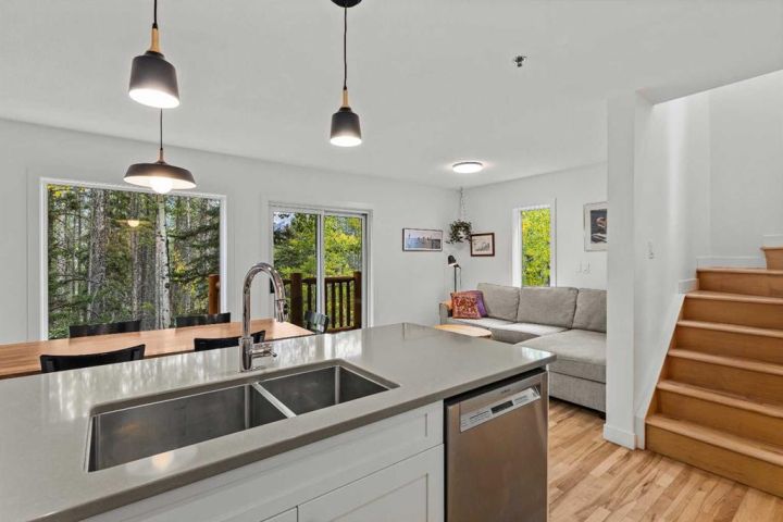 Stunningly presented 3 bedroom, 4 bathroom, end-unit townhouse in the sought-after neighborhood of Rundleview. You’ll love the fully renovated kitchen, solid maple hardwood flooring through the living level and bedrooms, and the huge walk-out additional living area on the lower level with brand new carpet. Numerous balconies and patio allow you to sit amongst the surrounding aspen and feel like you’re bathed in nature. This end unit benefits from additional windows and natural light – and of course that treed view that brings a sense of calm indoors. An enviable location backing on to protected Environment District lands and close to Quarry Lake, Nordic Centre and easy access to Kananaskis Country. Single attached garage, driveway parking, plus visitor parking onsite. Owners love these townhomes and there has not been a listing here for over 2 years – don’t wait to schedule your viewing! (Please note: Short term rentals are not permitted at this property).