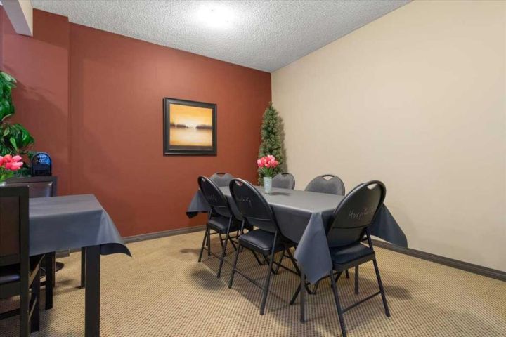 Top-floor condo living at its best in sought-after Inverness Estates, Building C! This well-designed 2 bed, 2 bath unit features soaring ceilings and large windows that fill the space with natural light. The east-facing patio offers a peaceful view and comes equipped with a natural gas BBQ hookup—perfect for year-round grilling. The spacious primary bedroom includes a generous walk-in closet and a 4-piece ensuite. You'll love the convenience of in-suite laundry as well as the included titled underground parking stall and assigned storage unit. Inverness Estates is a concrete-built complex praised for its exceptional soundproofing and quality construction. Residents enjoy access to fantastic amenities including a fitness center, multi-purpose lounge, and guest suites. The building is also small-pet friendly, making it a great fit for a variety of lifestyles. A rare top-floor opportunity in one of Grande Prairie’s most desirable condominium communities!