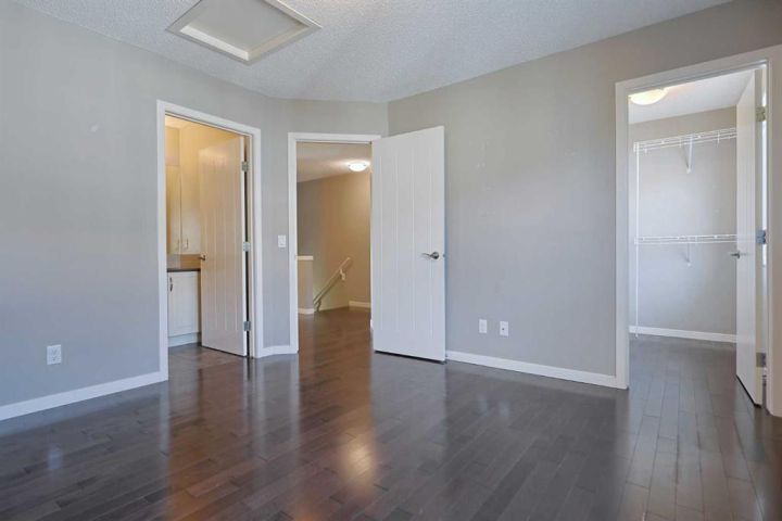 Don’t miss out on this chance to make your new home in this stylish townhome in THE ELEMENTS by Cedarglen, here in the popular family community of Panorama Hills. Available for quick possession, this fantastic 3 storey condo enjoys hardwood floors throughout, designer kitchen with quartz countertops, 2 bedrooms, 2.5 bathrooms & 2 car garage for your exclusive use. Complemented by 9ft ceilings, you'll love the open concept main living area on the 2nd floor with its rich hardwood floors & big windows, South-facing living room with alcove for your home office, dining area with access onto the covered balcony & sleek kitchen with huge centre island & Frigidaire/Whirlpool stainless steel appliances. On the top floor there are 2 big bedrooms – each with walk-in closets & full ensuites. The ensuite in the North-facing bedroom has a shower/tub combo & the South-facing bedroom has partial downtown views & ensuite with walk-in shower. Between the bedrooms is a large walk-in closet & another closet for your linens & towels. On the ground floor is the laundry/utility room with stacking Maytag washer & dryer, & access into the 2 car garage. Additional features include Hunter Douglas blinds, tankless hot water system, quartz counters in the upper level bathrooms, natural gas line for a BBQ on the balcony, central vacuum system & front patio. Monthly condo fees include grass cutting & snow removal, & pets are okay on board approval. A park with sports court & playground is walking distance from your front door, & with its prime location you’ve got easy access to area schools & shopping, Country Hills Town Centre retail complex, VIVO Centre, Deerfoot & Stoney Trails.