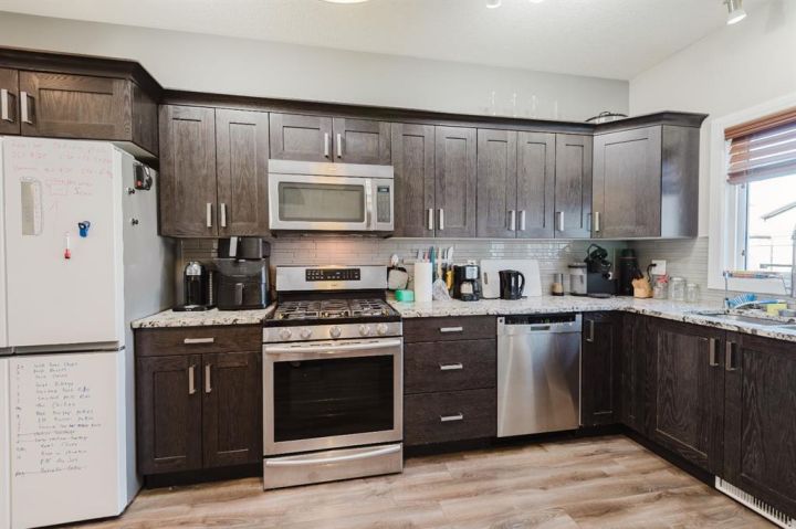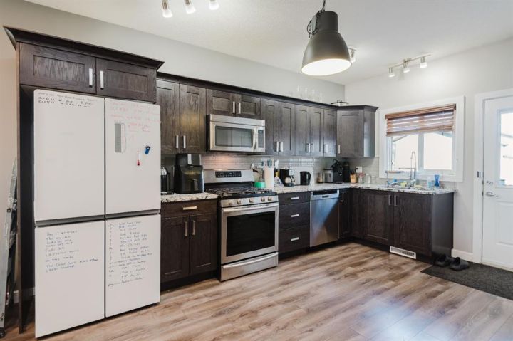 Discover an exceptional investment opportunity with this legal up/down duplex, thoughtfully designed for modern living and strong rental potential. Each unit features tasteful finishes, including rich espresso cabinetry, granite countertops, and contemporary fixtures that add warmth and sophistication throughout. The property includes an attached double garage, offering one private garage space per unit—a welcome winter convenience for tenants. A fully fenced, private yard provides outdoor space for relaxation and recreation. This turnkey property is already generating solid income, with the upper unit leased at $1,950/month and the lower unit leased at $1,700/month. Perfect for investors or owner-occupiers seeking mortgage support, this duplex combines style, functionality, and reliable cash flow in one attractive package.
