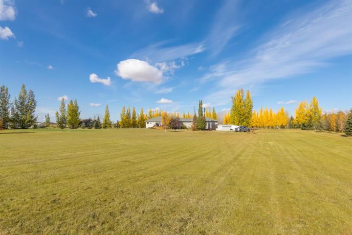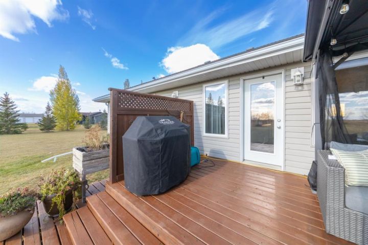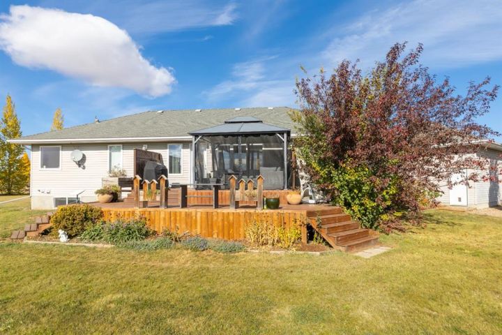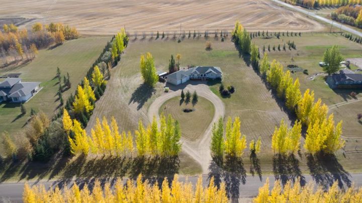 Welcome to your dream acreage in Willow Creek Estates, minutes north of Lloydminster. Situated on 4.2 beautifully landscaped acres, this well-maintained bungalow offers over 1,800 sq. ft. of main floor living space, vaulted ceilings, and large windows that flood the home with natural light. Enjoy a spacious kitchen featuring granite countertops and convenient main floor laundry. The living room offers direct access to the yard and deck, perfect for entertaining. A 2-piece guest bath, a dedicated home office/den, and a generous primary bedroom with a 5-piece en-suite and his-and-hers closets complete the main level. The fully finished basement features a large family room, two additional bedrooms, one with a grand walk-in closet and direct access to a 3-piece bath, providing extra space for guests or family. Outside, you’ll love the mature trees, shrubs, and manicured yard, complete with a firepit area, natural gas BBQ line and shed. The triple-attached heated garage is a huge bonus year-round, along with central A/C. This one checks all the boxes for rural living with modern comfort. 3D Virtual Tour Available!