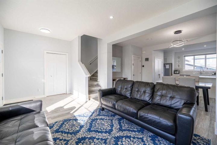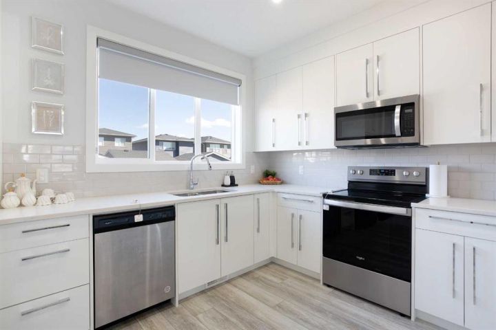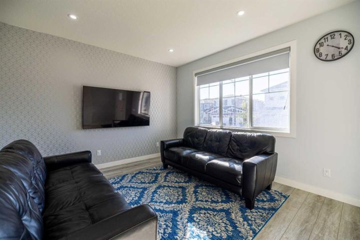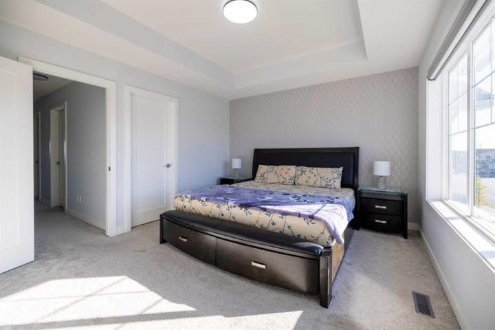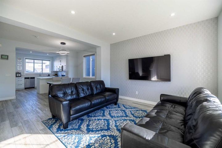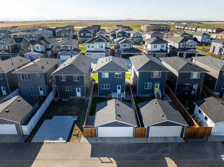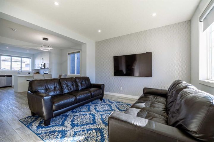 Welcome to this beautifully upgraded 4-bedroom, 3.5-bathroom single-family home, offering the perfect blend of space, style, and functionality in one of Chestermere’s most exciting new communities. Step inside to a bright and airy open-concept main floor featuring soaring 9-foot ceilings that enhance the spacious and welcoming atmosphere. The modern kitchen, dining area, and living room flow seamlessly together, making it an ideal space for both everyday living and entertaining. The living room is equipped with retractable window coverings (blinds) that can be conveniently adjusted from a distance, adding an extra touch of comfort and tech-savvy convenience. A powder room and access to the back deck and beautifully landscaped yard complete this level. Upstairs, you'll discover three generously sized bedrooms, including a serene primary suite with a private ensuite. The two additional bedrooms share a full bathroom, and the laundry room is conveniently located on the upper level—no more carrying laundry up and down the stairs! The fully developed basement also features 9-foot ceilings and a separate entrance, offering incredible flexibility. With a spacious bedroom, a brand-new full bathroom, a cozy living area, and rough-ins for a future kitchen and second laundry(subject to approvals and permitting by a municipality ) Enjoy secure parking and extra storage with a double detached garage. This move-in-ready home is located just steps from a scenic greenbelt and provides easy access to Calgary, making it ideal for both families and commuters. Plus, living in Chestermere means enjoying all the beauty and activities of Chestermere Lake, with year-round recreation including swimming, paddleboarding, and boating in the summer, and skating and ice fishing in the winter. Don’t miss your chance to live in this stunning home in a vibrant lakeside community. Book your private showing today!
