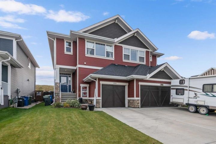 *Open House Saturday October 11th 1:00pm-3:00pm*Welcome to River Song in Cochrane, where convenience, lifestyle, and affordability meet. This meticulously maintained half duplex delivers spacious living at a fraction of the cost and no condo fees! Step inside to a welcoming foyer with a handy main floor powder room and direct access to the oversized single garage — perfect for storage, a motorcycle, or outdoor gear for the enthusiasts taking advantage of the short drive to the mountains. The open-concept main floor is filled with natural light thanks to a south-facing patio door and expansive stairwell windows. The bright white kitchen features granite countertops, stainless steel appliances, a large pantry and ample storage, seamlessly connecting to the dining area — ideal for hosting family and friends. Just off the dining space, the inviting living room with its cozy gas fireplace offers the perfect place to relax and bask in the natural light, especially on the cooler days. Upstairs, huge windows continue to flood the home with light. A spacious bonus room makes a great TV lounge or play area. The primary suite boasts a walk-in closet and a large private ensuite, while two additional bedrooms, a full bathroom, and convenient upstairs laundry complete the level. The basement is a true standout — a “speakeasy” style retreat that doubles as a recreation space or guest area, complete with a full bathroom equipped with a vintage soaker tub and vanity. Outside, enjoy your south-facing back deck with BBQ gas line and large patio — perfect for summer gatherings and laid-back evenings. This home is a fantastic fit for many lifestyles: downsizers who still want room for guests, buyers ready to move up from an apartment or townhouse or first-time homeowners looking for comfort and functionality. Come see for yourself how this property strikes the perfect balance of style, space, and value!