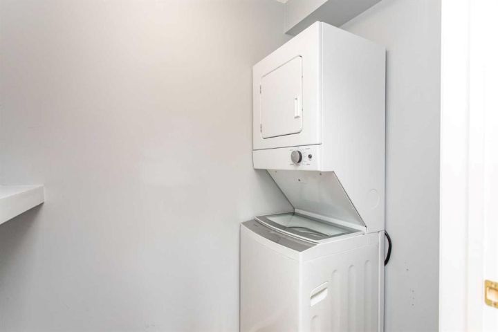 Fridge, Stove, Dishwasher, Washer/dryer stackable, storage cabinet in parking stall, window coverings, 2 fobs