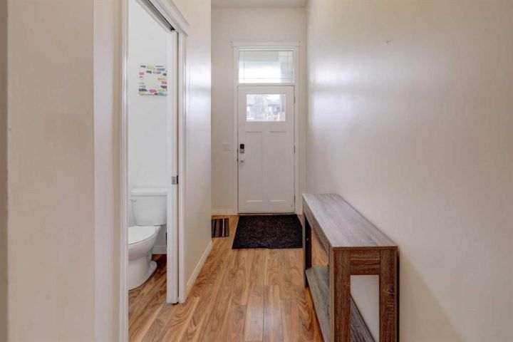 Extremely spacious & stylish home – perfectly located close to schools, parks, pathways, and shopping! Step inside to discover tall 9’ ceilings, durable laminate flooring, and an open main-floor designed for easy everyday living. The Kitchen features modern granite counters, stainless steel appliances, loads of cupboard space, with a convenient eat up island. Located adjacent to the Dining area which steps outside to the back yard & private deck - all perfect for entertaining. Completing the main level is a 2-pc Powder room for guests, Garage access, and an organized hall closet off the Foyer. Upstairs, the Primary Suite includes a 4-pc Ensuite with tiled floors, an oversized walk-in shower, double sinks with tons of storage, and a pocket door into an organized WALK-IN CLOSET. You’ll also find 2 more generous Bedrooms, a 4-pc Bathroom with tile floors and granite counters, and another convenient pocket door that hides away your UPPER LEVEL LAUNDRY! The basement offers a wide staircase, partially finished Rec Room area, roughed-in plumbing, and drywall already started — ready for the final touches to create your ideal space. Outside is one of the best features of this property, a large private deck, landscaped and fenced yard, and out front boasts ample parking with an OVERSIZED SINGLE GARAGE and Driveway. This home blends comfort, style and convenience at an unbeatable value — a fantastic find in Airdrie’s sought after community of Hillcrest!