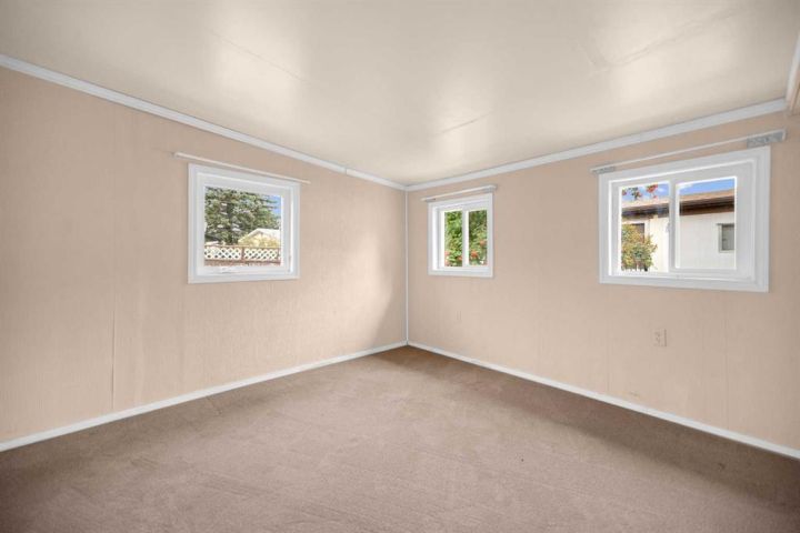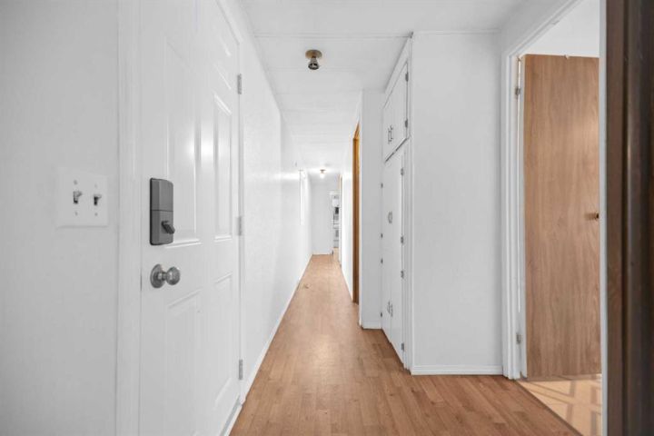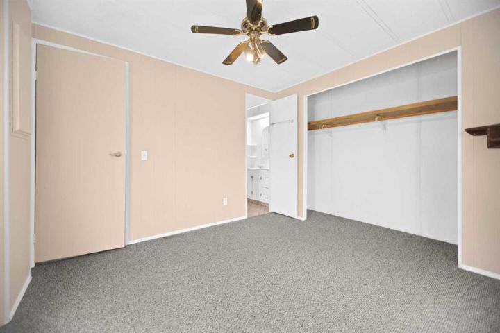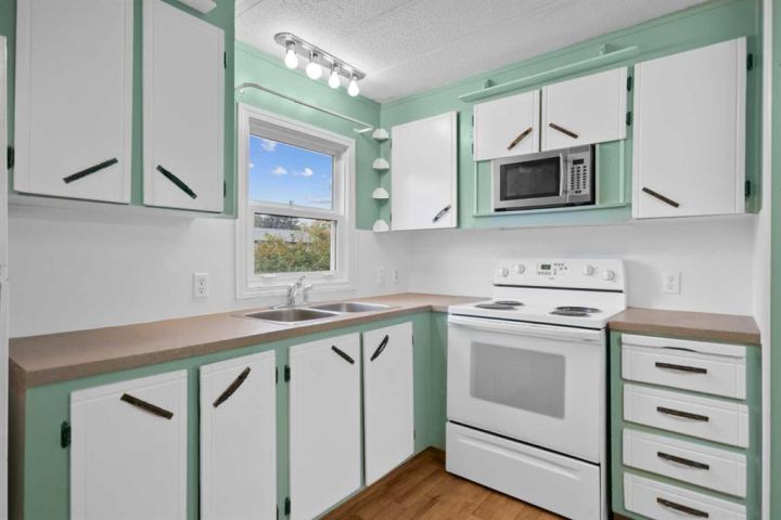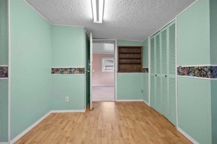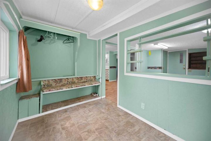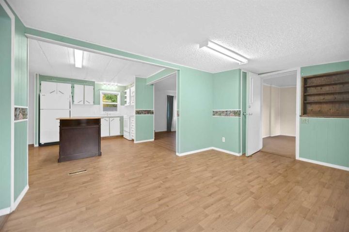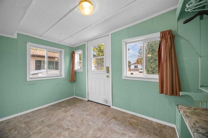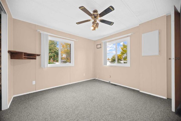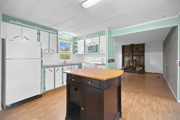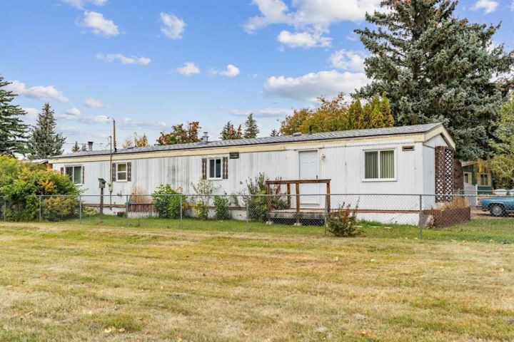 Looking for an affordable 2 bedroom home on its own lot so no pad fees, then look no further! This home is situated on a mature lot and features newer windows, shingles (2020) and newer back door. As you enter the home you will appreciate the large entrance with built in bench, shoe rack and closet. There is a large dining area with lots of natural light - a great place for family mealtimes. The kitchen features white cabinets, a central island, pantry and lots of counterspace. Relax in the spacious living with its lovely wood burning stove - snug and cozy on a cold winters day! There is a great den/office - this room does not have a heat source so is not included in the total square footage of the home. Bedroom # 1 has 2 large windows and is currently where the washer and dryer are hooked up. The primary bedroom has dual aspect windows, a ceiling fan, large closet and a door into the bathroom. The 4 piece bathroom features a large vanity. There is additional storage area too! The yard is fully fenced and features mature trees and shrubs and has 2 storage sheds. There is a gravel driveway to the front of the home so plenty of parking! View 3D /virtual tour/multimedia.