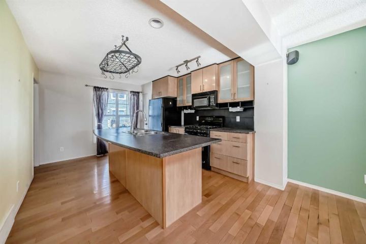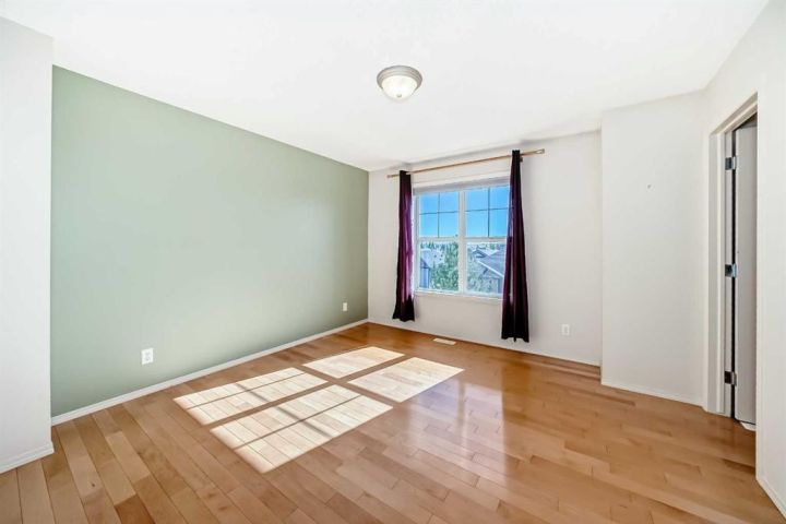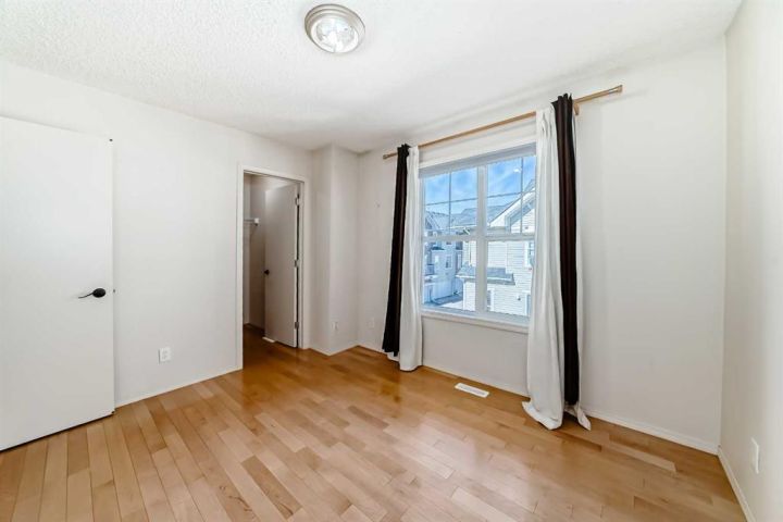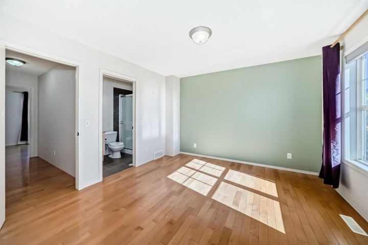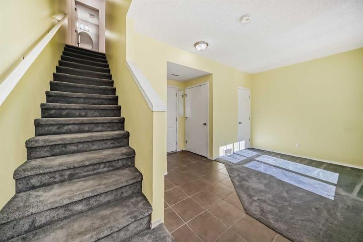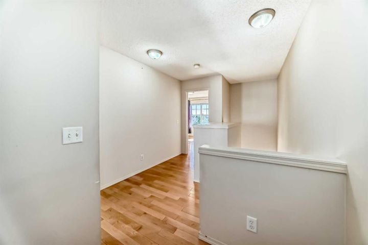 This sunny, south-facing townhouse has a great setup and feels more like a single-family home than part of a big complex. Out front, you’ve got a private, fenced patio with poured concrete and just enough tree coverage for shade and privacy. It’s the perfect spot to soak up some sun or fire up the barbecue. Inside, there’s a tiled mudroom right off the double attached garage, which easily fits two vehicles and has epoxy floors. The main level is open and bright with hardwood floors, a big kitchen island, gas stove, and plenty of windows that bring in tons of natural light. There’s also a handy two-piece bathroom on this level. Upstairs, both bedrooms have their own walk-in closets and ensuite bathrooms, which is a great setup for roommates or guests. There’s also a small den at the top of the stairs that makes a nice home office or reading spot. The south-facing deck looks onto single-family homes and even has a bit of a mountain view. You’ve got a gas line for your barbecue and central air conditioning to keep things cool in the summer. The complex is well-run, with recent roof replacements and good management. You’ll love living in Tuscany—close to the mountains, great schools, shopping, and easy access to the ring road.
