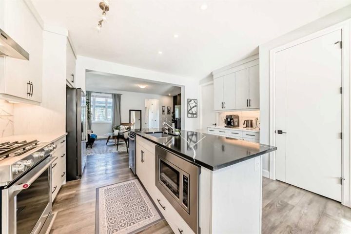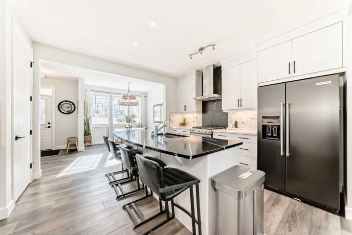 ** OPEN HOUSE: Saturday, October 11th 2-4pm and Sunday, October 12th 2-4pm ** Welcome to 404 Yorkville Avenue SW, a beautifully crafted 3-bedroom, 2.5-bath duplex in the heart of Yorkville, one of Calgary’s most vibrant and fast-growing southwest communities. Offering over 1,700 sq. ft. of thoughtfully designed living space, this home perfectly blends elegance, comfort, and everyday functionality. Step inside and immediately notice the attention to detail, from the bright, open-concept layout to the 8-foot doors, 5.5” baseboards, and stylish trim. The front dining area is filled with natural light, creating an inviting space for family dinners or relaxed evenings in. At the heart of the home, the chef-inspired kitchen stands out with floor-to-ceiling cabinetry, upgraded KitchenAid stainless steel appliances, striking two-tone quartz countertops, a silgranit undermount sink, and a large central island. A statement hood fan, two-tone backsplash, and dedicated pantry with a built-in coffee bar add the perfect finishing touches. Toward the back of the home, the cozy living room is anchored by a floor-to-ceiling electric fireplace and offers seamless access to the mudroom and double rear-attached garage, designed for convenience and flow. A stylish 2-piece powder room completes the main level. Upstairs, unwind in the spacious primary suite, featuring a walk-in closet and a spa-like 5-piece ensuite with a glass-enclosed tiled shower and separate soaking tub. Two additional bedrooms, a full 4-piece bath, and a conveniently located laundry room complete the upper level, ideal for families or guests. Outside, enjoy low-maintenance landscaping with rock, pavers, and a BBQ gas hookup, perfect for entertaining without the upkeep. The unfinished basement offers endless potential for a future rec room, home gym, or guest suite. Located just minutes from Spruce Meadows, with quick access to Stoney Trail and Macleod Trail, Yorkville is a community on the rise, featuring Yorkville Central Park, a community skatepark, scenic walking paths, and nearby schools in Silverado. This home combines style, comfort, and long-term value, an exceptional choice for families, professionals, or investors looking for a move-in-ready home in one of Calgary’s most exciting southwest neighborhoods.