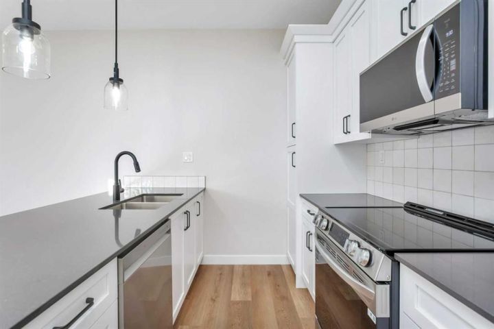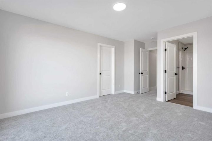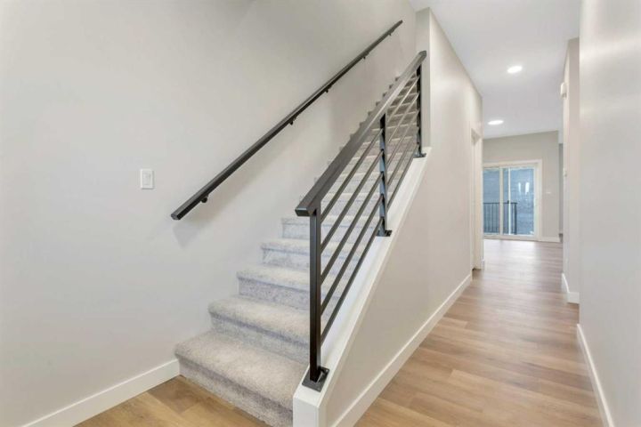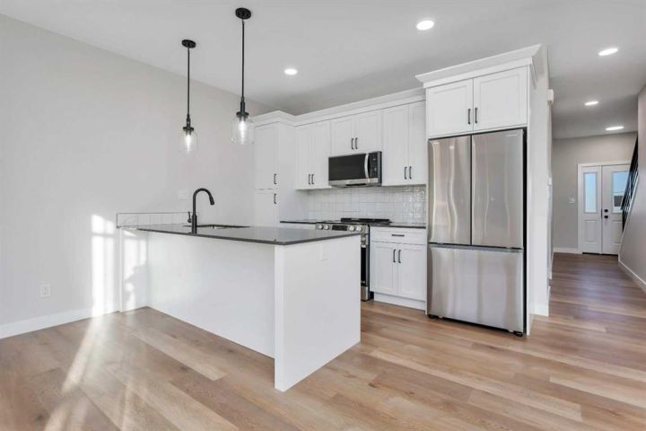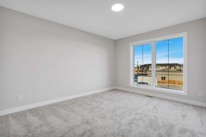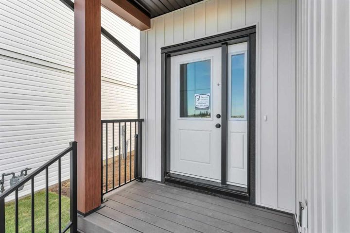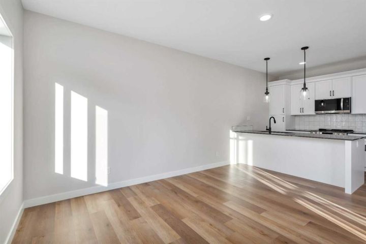 This stunning brand-new semi-detached home combines modern design with the comfort of a family-friendly community. Just minutes from the lake, you'll have easy access to endless recreational opportunities, including water activities, parks, and scenic walking trails. Step inside to a spacious foyer with a convenient 2-piece bath and direct access to the attached garage—now equipped with an electric vehicle charger for added convenience. The open-concept main floor features a beautifully designed kitchen with quartz countertops, a large island, and plenty of storage. The bright and airy dining area offers direct access to your south-facing deck, perfect for enjoying sunny afternoons. The living room is bathed in natural light, thanks to its expansive windows, and features durable, easy-to-maintain vinyl plank flooring throughout the main level. Upstairs, you’ll find three generously sized bedrooms, including a spacious primary suite with a 3-piece ensuite and a walk-in closet. The upper-level laundry room adds convenience, while a 4-piece main bathroom completes this thoughtfully designed floor plan. Enjoy a vibrant community with parks, playgrounds, a dry pond, and interconnected walking paths all just steps from your door. Don't miss your chance to own this exceptional home in an unbeatable location! PHOTOS ARE REPRESENTATIVE ONLY