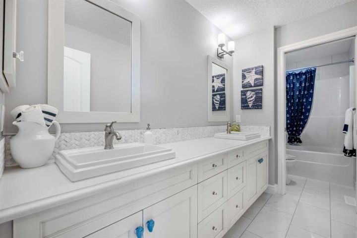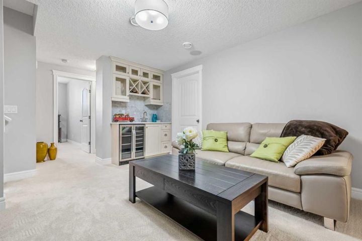 Welcome to 35 Mahogany Crescent SE, a stunning and meticulously maintained home in one of Calgary’s most sought-after lake communities. Offering over 2,500 sq. ft. of finished living space, this residence perfectly combines luxury, comfort, and thoughtful design. With 5 bedrooms, 3.5 bathrooms, and a FULLY FINISHED BASEMENT, with NO SIDE OR REAR NEIGHBOURS! From the moment you arrive, the timeless HARDIE BOARD exterior and beautifully landscaped front entry set the tone. Step inside to discover a bright, open-concept layout. The main living area impresses with a ASTONISHING FIREPLACE, COFFERED CEILINGS in both the bonus room and primary suite, and IN-CEILING SPEAKERS for the ultimate entertainment experience. The chef’s kitchen is a true showpiece, boasting QUARTZ COUNTERTOPS throughout, CUSTOM CABINETRY, GAS STOVE, HOOD FAN, CONVECTION MICROWAVE, NEW DISHWASHER, and PREMIUM BUILT-IN APPLIANCES including a MEILE COFFEE MACHINE, FARM SINK, REFRIGERATOR, BAR REFRIGERATOR and much MORE. Upstairs, the primary retreat offers a luxurious escape with a COFFERED CEILING, SPA-INSPIRED ENSUITE FEATURING HEATED FLOORS, STAND ALONE TUB, 10MM GLASS and TILE SHOWER, AND A WALK-IN CLOSET WITH CUSTOM CABINETRY. The upper floor also includes a SPACIOUS BONUS ROOM, ADDITIONAL BEDROOMS, AND ELEGANT DESIGN DETAILS THROUGHOUT. The FULLY FINISHED BASEMENT EXPANDS YOUR LIVING SPACE WITH A LARGE RECREATION AREA, ADDITIONAL BEDROOMS, AND AMPLE STORAGE. Modern conveniences such as TWO AIR CONDITIONING UNITS, a WATER SOFTENER, and HEATED FLOORS IN THE ENSUITE ensure year-round comfort. Step outside to the CUSTOM CONCRETE PATIO with a CUSTOM BUILT-IN FIREPLACE, ideal for entertaining or relaxing under the stars. Enjoy a GAS LINE BBQ, HOT TUB ROUGH-IN, and a BEAUTIFULLY LANDSCAPED PRIVATE BACKYARD designed for LOW-MAINTENANCE OUTDOOR LIVING. The HEATED DOUBLE GARAGE is a standout feature, complete with EPOXY FLOORS,OVERHEAD STORAGE RACKS, and a GARAGE HEATER, providing functionality and style for every season. Both the roof and furnace are original, reflecting the home's solid craftmanship and ongoing care. Every detail of this property—from its QUARTS SURFACES and CUSTOM CABINETRY to its thoughtful upgrades and cohesive design- reflects pride of ownership. Ideally located near PARKS, PATHWAYS, SCHOOLS, SHOPPING and MAHOGANY LAKE, this home captures the best of lake community living in Calgary's southeast. Within STEPS TO THE LAKE and BACKING TO GREEN SPACE, 35 Mahogany Crescent SE offers the perfect balance of sophistication and comfort—move-in ready and waiting for its next owners to enjoy an exceptional lifestyle in Mahogany.