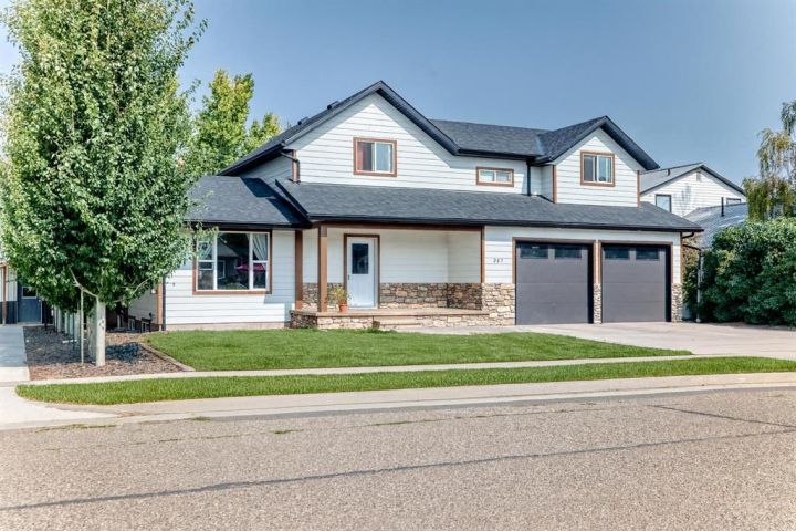 This Nobleford home was beautifully renovated just a few years ago, creating a modern, comfortable, and spacious retreat for families of any size. Featuring 6 bedrooms, 2.5 bathrooms, a double heated attached garage, and detached 23’x28’ shop. This property offers incredible versatility and convenience—all set on a massive .25-acre double lot in a quiet neighborhood in Nobleford. Step inside to discover an inviting open-concept main floor with recessed lighting, large windows, and a bright living and dining area perfect for hosting or relaxing. The upgraded kitchen boasts new appliances, cabinetry with tons of cupboard space, and a central island that makes meal prep a breeze. This home also features a spacious mudroom tucked neatly off the garage, offering excellent storage and functionality, right next to a private home office—ideal for today’s busy lifestyles. Recent upgrades include a newer furnace, roof, water tank, carpet, trims, kitchen, and more, providing both style and peace of mind. Upstairs, three bedrooms surround a central landing with storage and a full bath, while the primary suite offers a walk-in closet and private ensuite. The fully finished lower level includes two additional bedrooms, a full bath, and a large storage area. Outside, the detached shop will be a delight for anyone needing extra storage or maybe a collector needing additional storage or workspace. The property’s massive backyard is complete with a huge deck for entertaining, garden space, firepit, play area, and drip irrigation for trees and shrubs. With plenty of parking, a school nearby, and ample space both inside and out, this Nobleford gem combines small-town charm with modern upgrades and family-friendly living.