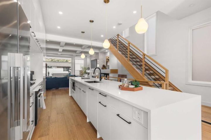Located in the highly sought-after community of West Hillhurst, this exceptional two-storey home offers over 3,100 square feet of developed living area that blends refined luxury with timeless European-inspired design. Custom-built by Deanmark in 2023, every detail reflects superior craftsmanship and quality materials. With four bedrooms and three and a half bathrooms, this residence delivers both sophistication and functionality for modern family living.The inviting foyer sets the tone with tile flooring and a built-in bench, while wide-plank engineered hardwood extends seamlessly throughout the rest of the main level. Ten-foot ceilings and eight-foot solid core doors enhance the sense of height and elegance, while large windows fill the home with natural light. The open-concept layout connects the kitchen, dining, and living areas, creating an ideal setting for everyday living and entertaining alike. The kitchen is a showpiece, featuring sleek white cabinetry, quartz countertops, a massive waterfall island with seating, and premium Fisher & Paykel stainless steel appliances, including a gas cooktop. Ample storage and workspace make it as functional as it is beautiful. The adjacent dining area easily accommodates family gatherings, while the living room exudes warmth with its linear gas fireplace, tile surround, custom built-in display shelves, and coffered ceiling. A stylish two-piece powder room with a stone pedestal sink finishes the main floor. Upstairs, nine-foot ceilings and thoughtful design create a calm retreat. The primary suite is a luxurious escape, featuring soft carpeting, a spacious walk-in closet with custom shelving, and a spa-like ensuite with heated tile floors, dual sinks, a soaker tub, and an oversized shower. Two additional bedrooms, a four-piece bathroom, and a convenient laundry room round out the upper level. The fully developed basement features 9’4” ceilings, oversized windows, and a bright, open layout. A large recreation room with a sleek wet bar, complete with sink, beverage fridge, and wine display, creates an inviting space for entertaining. A guest bedroom, three-piece bathroom with steam shower, and dedicated storage add functionality. Outside, the backyard offers a concrete patio and grass area leading to a double detached garage with alley access. Hunter Douglas blinds and central air conditioning add year-round comfort. West Hillhurst is one of Calgary’s most desirable inner-city neighbourhoods, known for its blend of family-friendly charm and urban accessibility. You’re within walking distance to the vibrant shops, cafés, and restaurants of Kensington, offering an unmatched lifestyle. Families will appreciate being just a 15-minute walk from both Queen Elizabeth Schools. Nearby parks and the Bow River pathways provide endless opportunities to enjoy the outdoors, while commuting is effortless with easy access to major roadways and transit. Check out the 3D tour for a closer look!