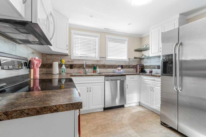Eastview bungalow with LEGAL SUITE, separate entrance and divided double garage for tenants. Recent upgrades include a high-efficiency furnace & HWT ensuring low maintenance and energy efficiency. The upper level has been tastefully renovated with upgrades to windows, flooring, kitchen cabinets, bathroom, interior doors and trim, and paint. With 3 bedrooms upstairs and a full bathroom, there is ample space for a growing family or guests. The lower level features a one-bedroom legal suite with a kitchen and bathroom, while the den can be utilized as a second bedroom. Convenience is key with shared laundry in the basement and additional storage space. Each level has its own private entrance providing privacy for both occupants. The yard is spacious and includes a fire-pit, as well as off-street parking for 2 vehicles on a gravel pad in addition to the double garage. Don't miss out on this unique property that offers both a comfortable living space and additional rental income potential. Tenants are month to month occupancy and revenues are $1,400.00 up and $1,100.00 down. Tenants pay electrical as both up and down have their own electrical meter.