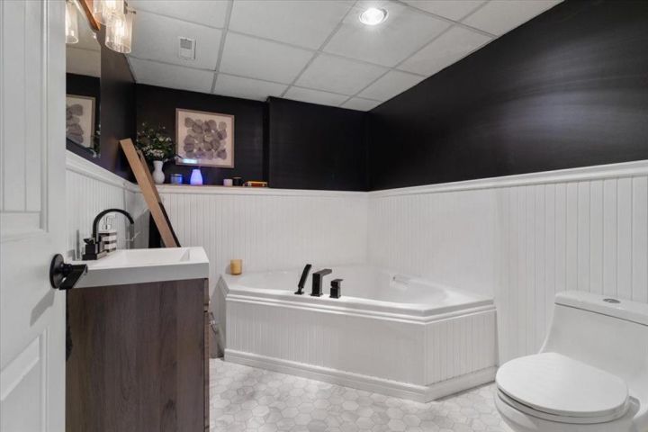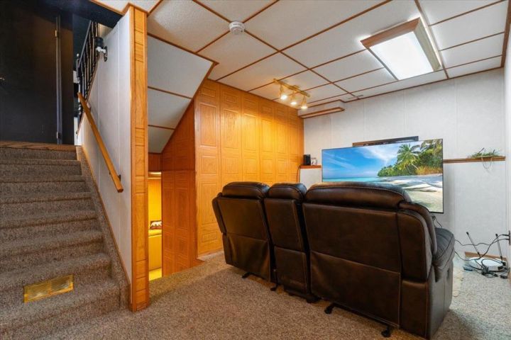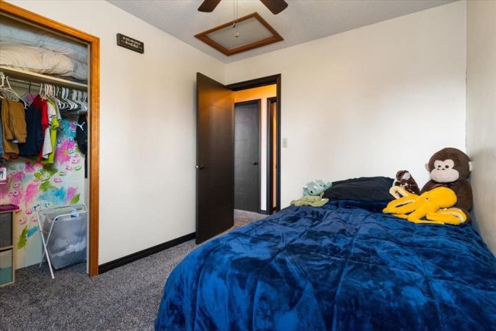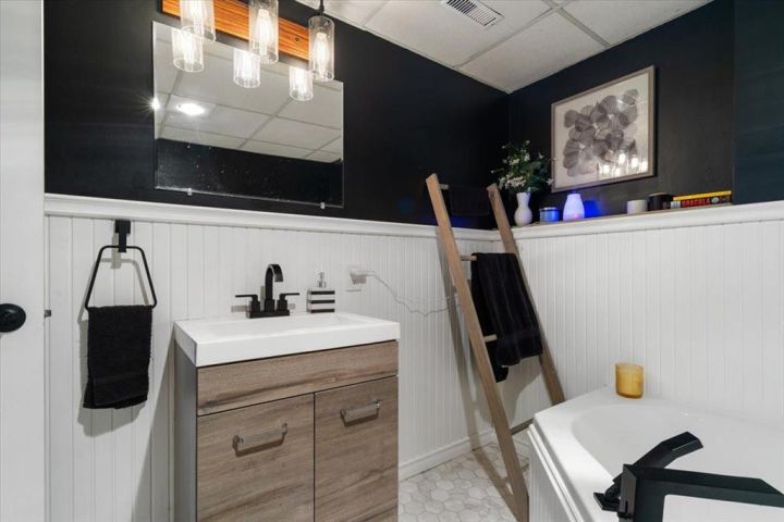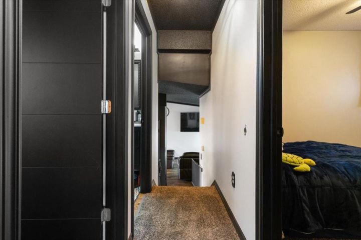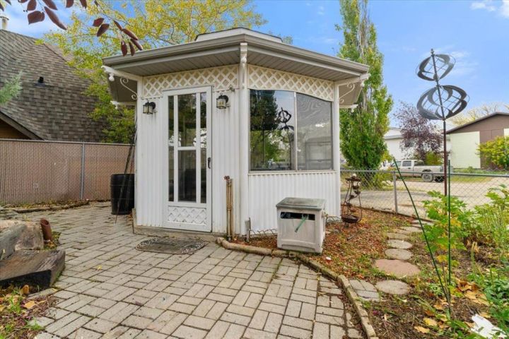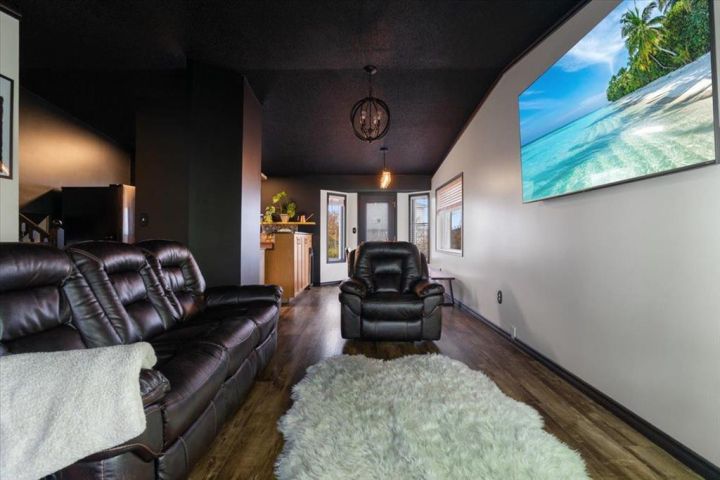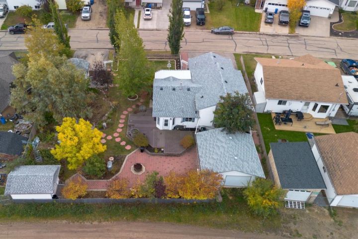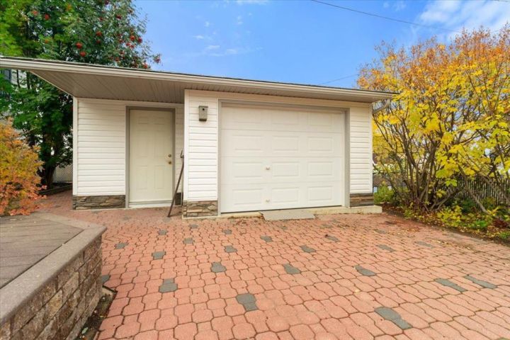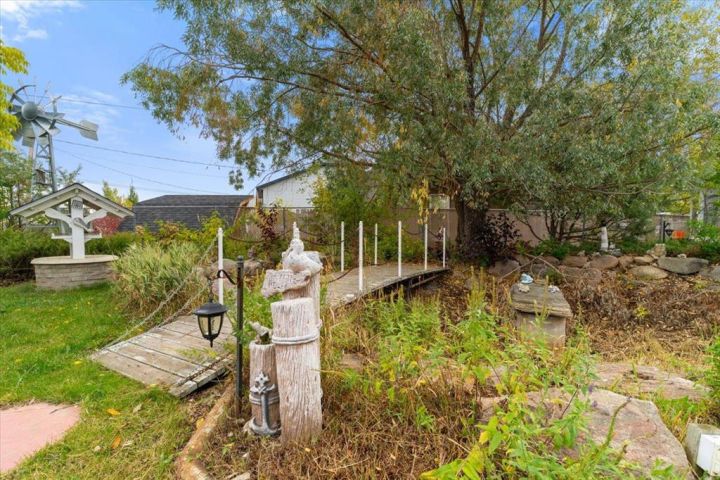 This spacious and updated 4-level split sits on two beautifully landscaped lots. Featuring two garages, two driveways, and RV parking. The main level is fully renovated with vinyl plank flooring, and modern dark ceilings and trim giving the whole space a modern industrial feel. The kitchen includes newer modern appliances, open wood shelving, a pantry, and breakfast bar. Upstairs, you’ll find three bedrooms with brand-new carpet, a 3-piece ensuite, and another fully renovated 3-piece bathroom with a sleek stand-up shower. The third level has a cozy rec room, the fourth bedroom, a large laundry room, and a stunningly renovated third bathroom with a deep soaking tub. The basement adds even more living space with a third living room and a large furnace/storage room. Outside is truly something special: beautifully landscaped like a private oasis, it includes brick pathways, mature trees, a firepit area, water features, a charming bridge, a powered gazebo, and a powered garden shed. With taps throughout the yard and raised beds ready to go, it's made for easy outdoor living. Tucked away on a quiet, low-traffic street, the home backs onto an easement with a direct path to a nearby K–3 school, ideal for families looking for both space and peace of mind. Other big ticket updates include: central air, high effiecency furnace, new shingles (2022) newer hot water tank, and some vinyl windows.