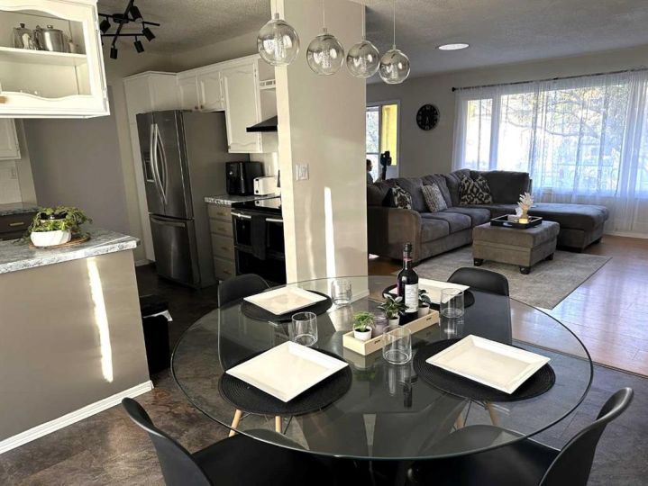 Move In Ready ... Welcome to your dream family home! This stunning bungalow features 5 bedrooms and 4 bathrooms, combining modern comforts with classic charm. Enter into a warm and inviting living room with an open floor plan, a highlight is the solar tube, allowing for natural light to enter. The functional kitchen is sleek and offers an adjoining dining area, perfect for family dining and gatherings. Step through patio doors onto a new deck, ideal for barbecues and unwinding after a long day. The beautifully renovated basement boasts a spacious family room, two bedrooms with their own spa-like bathrooms. Enjoy year-round comfort with a new furnace and hot water tank. The basement also features hookups for a fridge, stove, washer, and dryer. Outside, you'll find an expansive yard with a garden area and a generous 2-car heated garage with additional parking. Located in a friendly, mature neighborhood, you’re just minutes away from schools, parks, churches, and sports facilities. Highlights for this property include a new metal roof, updated electrical panel, new hot water tank, and furnace. Don't miss your chance to make this exceptional bungalow your home—where unforgettable memories await!