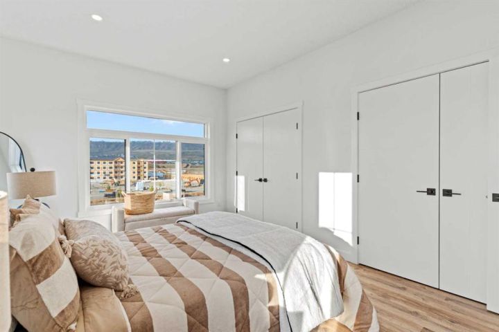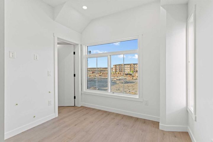 Discover the perfect balance of modern elegance and relaxed living in this stunning home, thoughtfully designed for comfort, connection, and outdoor enjoyment. Located in one of Cochrane’s most desirable new communities, this property offers a rare chance to experience waterfront living with quick access to the Rocky Mountains and all the amenities of the growing Greystone development. Step inside and you’ll be welcomed by a bright, open-concept layout featuring 9-foot ceilings and luxury wide-plank flooring throughout. The gourmet kitchen is beautifully equipped with quartz countertops, soft-close cabinetry, premium stainless steel appliances, and a spacious island perfect for casual dining or entertaining. The home features three bedrooms and two full bathrooms, each designed with modern fixtures, stone tile floors, and matching quartz vanities. Your convenience continues with a single attached garage and an additional parking pad, providing plenty of room for family and guests. Enjoy peaceful mornings on your private deck overlooking the water, or take advantage of the brand-new pickleball courts just across the street. Meandering garden pathways, green spaces, and local parks make it easy to unwind outdoors and stay active year-round. Perfectly situated within walking distance to Ocgrow’s Greystone Place Retail Centre, you’ll have access to restaurants, cafés, shops, and the upcoming flagship Co-op grocery store — everything you need right at your doorstep. Plus, with Spray Lakes Sports Centre minutes away and the Rockies within reach, adventure and leisure are always nearby. Be part of Cochrane’s fastest-growing community and experience a lifestyle where modern design meets natural beauty — live, work, and play - welcome home to Greystone.