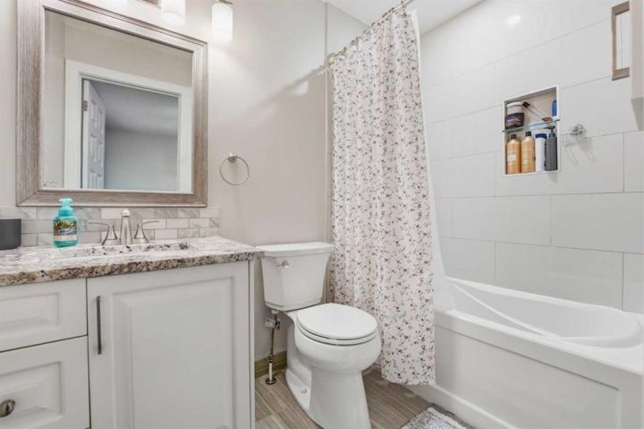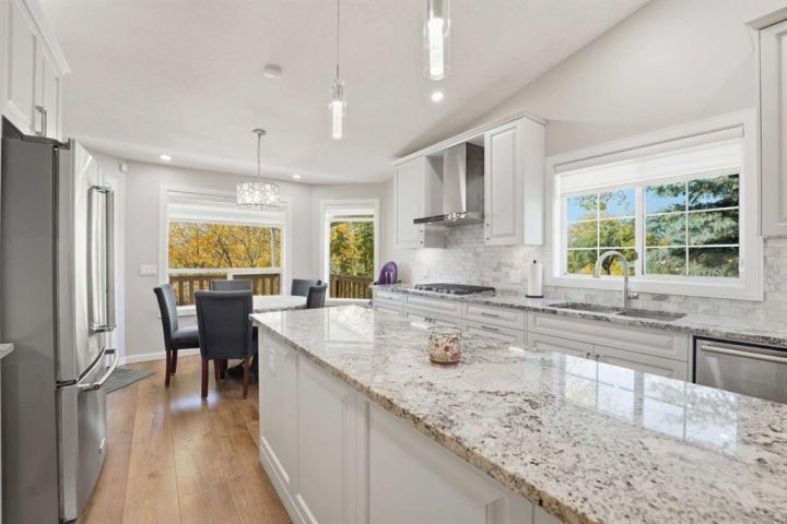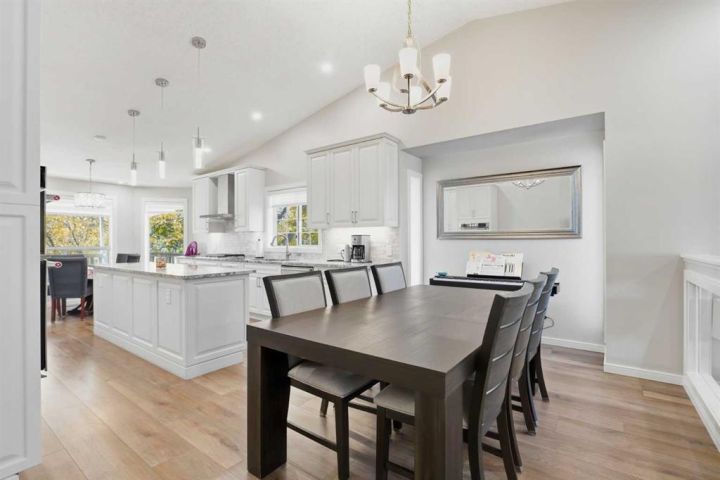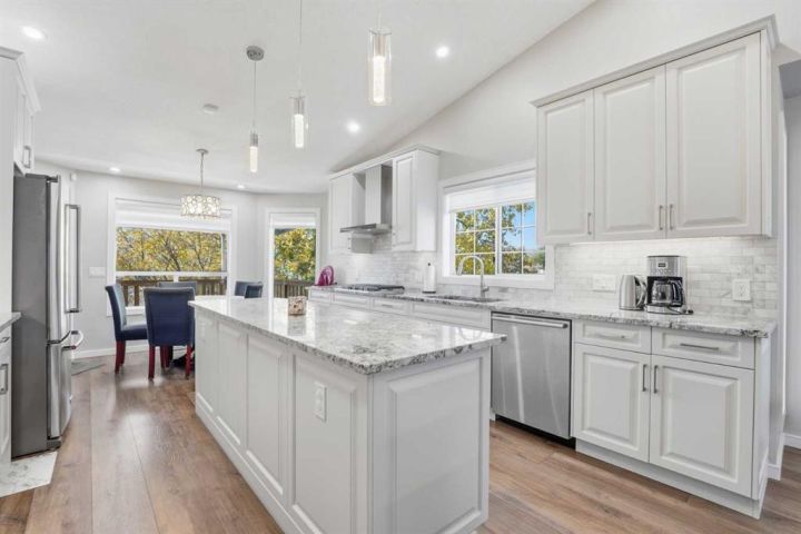 HONEY! START THE CAR! Welcome home to this BEAUTIFUL corner lot, adjacent to GREENSPACE, where MODERN ELEGANCE meets FUNCTIONALITY. This spacious 2,382 square feet in total bi-level DETACHED home with a DOUBLE ATTACHED GARAGE is sure to IMPRESS! This property has many FEATURES that you will LOVE, including the unique floor-plan with the living room located on the main floor level, and the OPEN CONCEPT layout with high MODERN flat textured VAULTED CEILINGS. RECENT RENOVATIONS have been done inside this property from TOP to BOTTOM! This property FEATURES new high-end STAINLESS STEEL appliances, GRANITE counter tops, CUSTOM cabinetry with tons of storage space, a LARGE kitchen Island, BUILT-IN convection oven and microwave, a 5-burner GAS RANGE STOVETOP, GORGEOUS wide-plank scratch resistant flooring throughout, NEW carpets throughout, MODERN flat textured ceilings throughout, high-end CLASSY light fixtures and pot lights, CUSTOM window coverings, DECK access conveniently located off of the kitchen, 4 spacious sized bedrooms, including the primary bedroom with a WALK-IN CLOSET and 4-PIECE ENSUITE, 3 full bathrooms FEATURING TILE FLOORING, TILE BACKSPLASH, and GRANITE countertops, JETTED bathtub on the lower level, LOTS of windows throughout allowing for lots of NATURAL sunlight, the laundry room features a LARGE window and a LARGE sink, lots of STORAGE SPACE, a WELL-KEPT and spacious FULLY FENCED backyard, the lower level features a SUITE that can be kept as so, or can easily be converted back into a non-suite, included with this property is an A/C unit for those hot spring and summer months, and the ICING ON THE CAKE - this property features high-end GEMSTONE EXTERIOR lighting!!! Make this IMPRESSIVE property your new home, this property will not last long, call your favourite realtor today!
