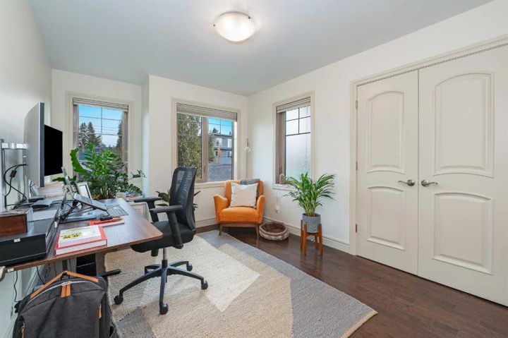 Meticulously cared for & beautifully updated 3+2 bedroom home in the established community of Richmond, offering over 3400 sq ft of living space! The main level presents new hardwood flooring & high ceilings, showcasing the front living room anchored by a floor to ceiling fireplace that transitions to the refreshed kitchen, tastefully finished with new counter tops & island/eating bar with new light fixtures, freshly painted cabinets, new backsplash & stainless steel appliances. The dining area provides ample space to host family & friends. Completing the main level is a mudroom with California Closet coat area plus a 2 piece powder room. An open riser staircase leads to the second level that hosts 3 bedrooms, a 5 piece main bath & laundry room. The primary retreat with modernised fireplace & Juliet balcony boasts a walk-in closet & secluded 5 piece ensuite with dual vanities, relaxing soaker tub & rejuvenating steam shower. The third level with vaulted ceiling is a great entertaining space featuring a large family/media room with fireplace & balcony access, wetbar & 2 piece bath. Basement development includes new carpet, huge recreation room with California Closet built-ins, two additional bedrooms, 3 piece bath, wine cellar & plenty of storage. Other notable features include fresh paint throughout, central air conditioning & built-in speakers throughout. Outside, enjoy the lovely front garden with patio & sunny south back yard with patio that can be shelered by an awning. Parking is effortless with a double detached garage. The location is incredibly convenient, steps to 2 parks & close to schools, shopping, public transit & easy access to Crowchild Trail. Immediate possession is available!