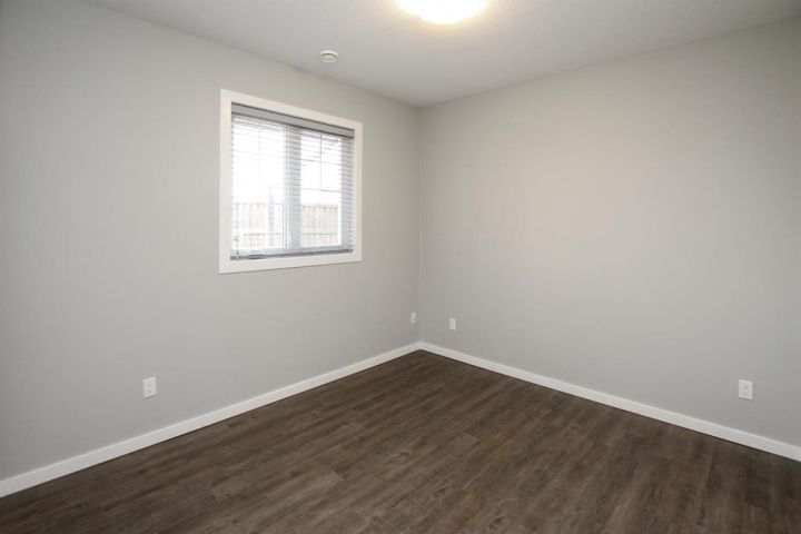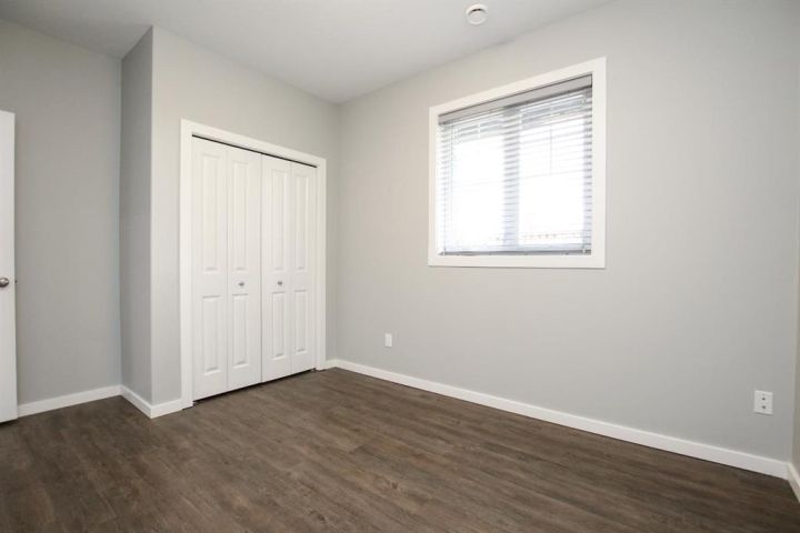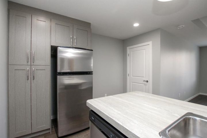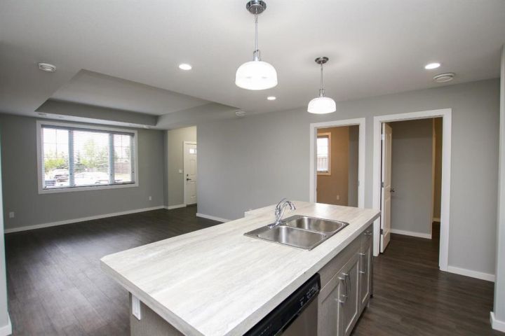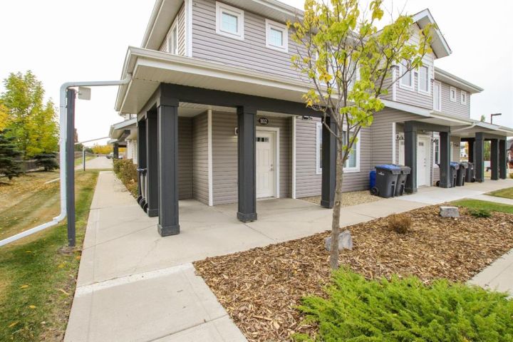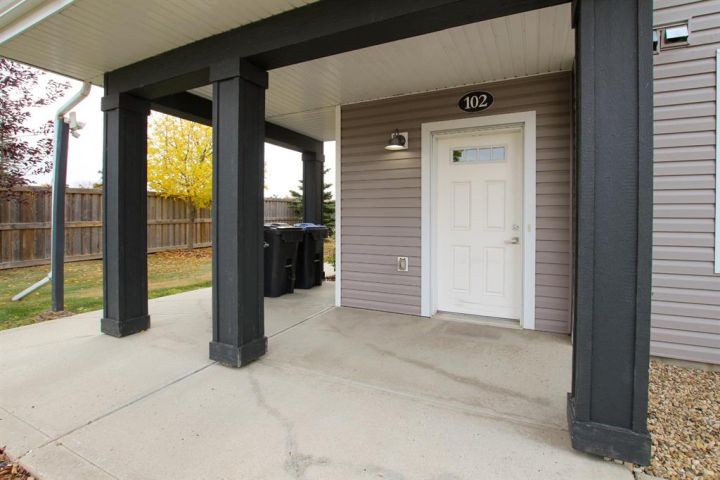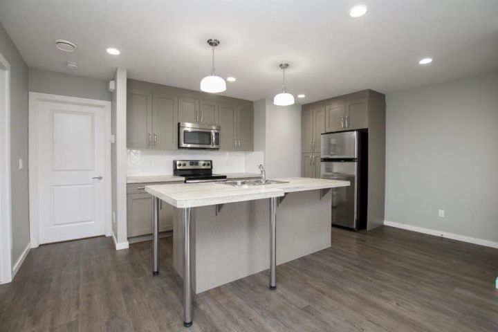 IMMEDIATE POSSESSION AVAILABLE ~ MOVE IN READY 2 BEDROOM, 1 BATH CONDO ~ MODERN FINISHES THROUGHOUT ~ Covered front patio welcomes you and leads to a welcoming foyer with a large coat closet ~ Open concept layout complemented by high ceilings and vinyl plank flooring creates a feeling of spaciousness ~ The living room has tray ceilings, recessed lighting and a large picture window that fills the space with natural light ~ The eat in kitchen offers a functional layout with plenty of cabinets with a wall pantry, ample counter space including an island with an eating bar and pendant lights above, full tile backsplash and stainless steel appliances ~ 2 bedrooms are both a generous size with ample closet space and large windows ~ Oversized 3 piece bathroom features a walk in shower with a bench and convenient access to the in unit laundry room ~ In unit storage room ~ Monthly condo fees are $254.28 and include exterior insurance, maintenance grounds, professional management and reserve fund contributions ~ Pets OK with some restrictions ~ 1 powered parking stall just outside your front door with tons of visitor parking ~ Located in the popular Ryders Ridge neighbourhood with walkable access to schools, parks, walking trails, and multiple shopping plazas with tons of restaurants, shopping, medical and more ~ Immediate possession and move in ready!