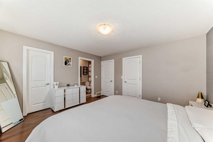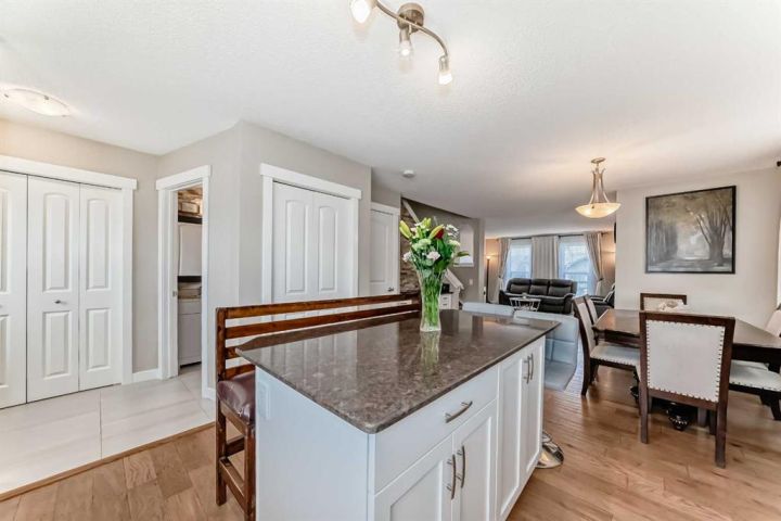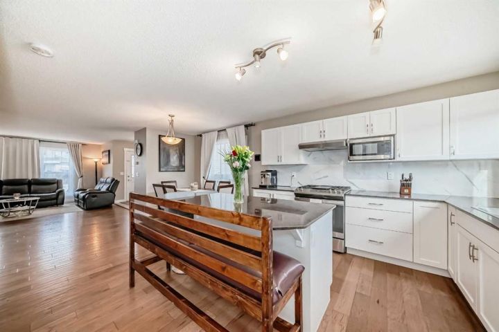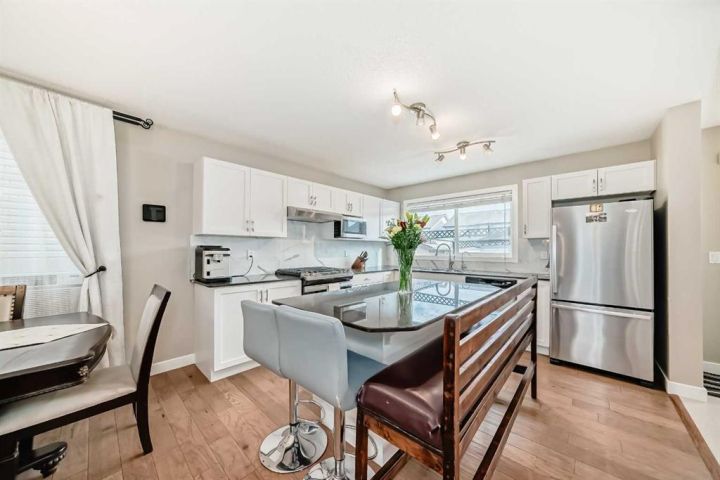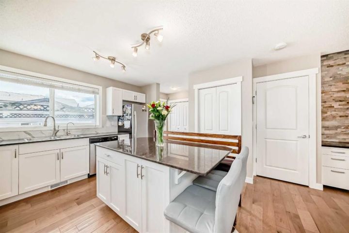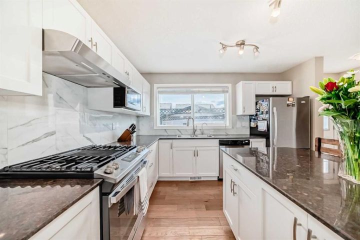 You don't want to miss out on this gorgeous family home, sparkling with "pride of ownership" throughout! It is absolutely MOVE-IN ready! The front entryway will impress with tile flooring & a large coat closet which flows naturally into the bright and open floor plan. Warm hardwood floors, crisp white cabinets accented by darker granite counters, huge island, newer gas range & hood fan will all via for your attention. Kitchen, Living Room, Dining Room, 1/2 bath and back entry make this main floor level roomy, practical, warm and inviting. Upstairs you will find a large primary bedroom, with 4 piece ensuite and walk in closet. The other 2 bedrooms each have their own walk in closet as well! Upper level is completed with a 4 piece family bathroom. Downstairs, the professionally and newly developed basement (with all permits) contains a 4th bedroom, a 3 piece bathroom, large family room, laundry, storage and mechanical room. All designed with care to make this an amazing home. One of the few properties on this street with a double detached garage. (Fully insulated). Enjoy your private back yard with a large concrete patio and lawn. Recent upgrades include: all new flooring, professionally painted cabinets, new counter tops in bathroom, newer washer/dryer & gas stove, professionally developed basement (2 years ago), new furnace (2020), & double-detached and insulated garage. Book your private viewing today!! Priced to sell!