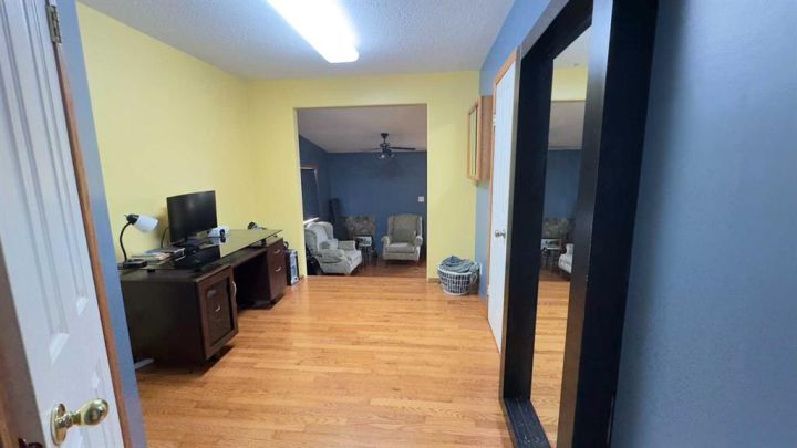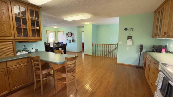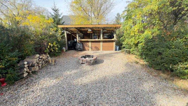 Set on a generous lot in the welcoming community of Edgerton, this well-maintained bungalow offers plenty of space both inside and out for your family to enjoy. The main floor features beautiful hardwood floors, three comfortable bedrooms, a full bathroom, and a large primary bedroom complete with a walk-in closet and an ensuite with dual showerheads. The bright kitchen is highlighted by rich oak cabinetry, a walk-in pantry, and an eat-in island that opens to the spacious dining and living area—perfect for family gatherings. Outside, you’ll love the awesome outdoor bar and barbecue area built around the firepit, creating the ideal space for entertaining and relaxing. The large yard offers lots of room for anything you may choose—gardening, play, or future expansion. A detached double garage and large shop provide great storage and workspace options. The owner is also planning to replace the shingles on the house and install a wood-burning stove in the shop, offering even greater comfort and value for the next owner. This property is an excellent opportunity to enjoy small-town living with space, privacy, and charm in the heart of Edgerton.