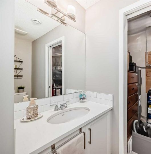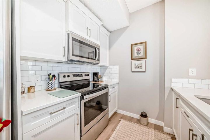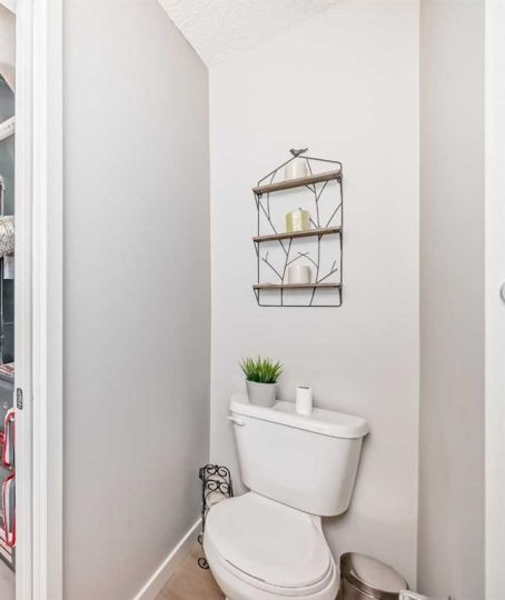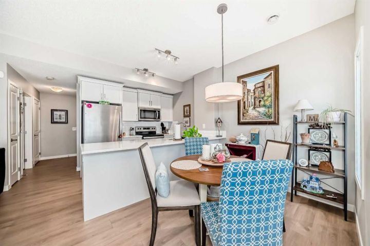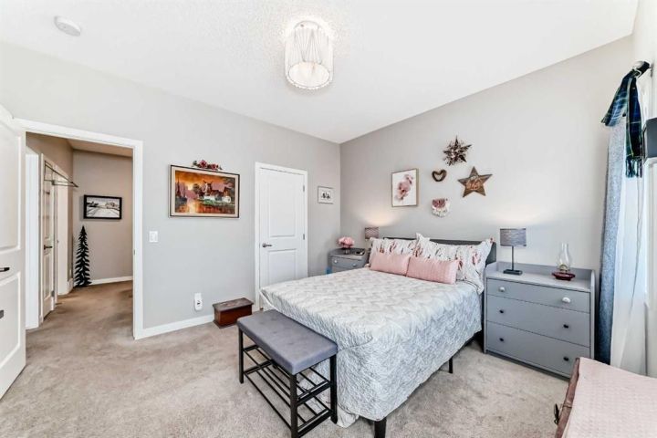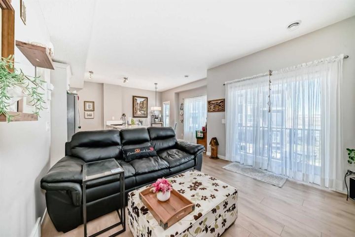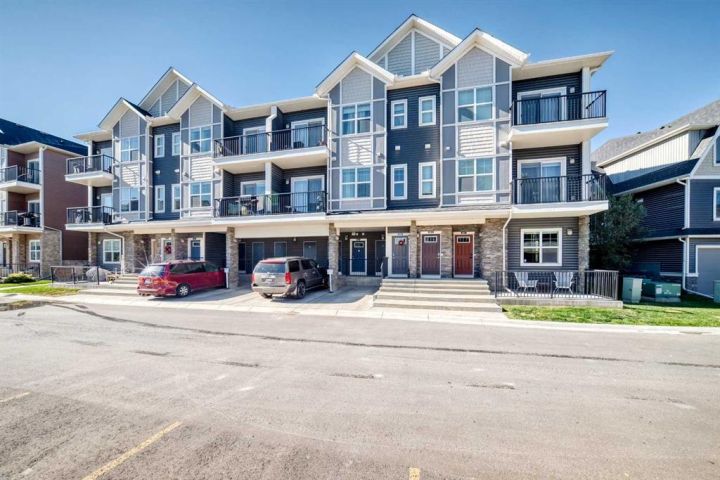 Welcome to this stunning and immaculately maintained townhome located in the highly desirable community of Fireside in Cochrane, where breathtaking views of the pond and surrounding green space provide a tranquil, nature-inspired backdrop to everyday living. This thoughtfully designed home showcases a beautiful blend of modern style and everyday functionality, featuring upscale finishes such as wide plank laminate flooring, soft plush carpeting, elegant porcelain tiles, soaring 9-foot ceilings, and energy-efficient LED lighting throughout. The heart of the home is the gourmet kitchen, equipped with sleek quartz countertops, crisp white Euro shaker-style cabinetry, stainless steel appliances, a convenient breakfast bar for casual dining, soft-close pull-out drawers, and a spacious pantry that ensures ample storage. The open concept is filled with natural light that flows seamlessly from an abundance of large windows and patio doors, onto two private balconies, offering a perfect extension of your living space where you can enjoy morning coffee’s or unwinding in the evening while soaking in peaceful views of the pond and green space. Upstairs, you’ll find two generously sized bedrooms, including a bright and spacious primary retreat complete with a large walk-in closet, along with a stylish full bathroom,- and an additional powder room on the main level , both featuring quartz countertops and chic, modern light fixtures. The home also includes a full-sized laundry area with a stacked washer and dryer conveniently located on the upper floor, wide staircases for easy access, and a spacious utility room for extra storage. There is also a larger, separate dedicated storage unit, and a titled parking stall just steps from the front entrance. Situated in a well-managed, family-friendly complex with ample visitor parking, this property is ideally located just steps away from scenic walking paths, tranquil ponds, a gazebo, benches, and beautifully landscaped green spaces, making it perfect for peaceful walks, picnics and outdoor relaxation. Fireside is a vibrant and growing community offering excellent schools, charming local eateries, shopping, and all the essential amenities you need, all just minutes from the heart of Cochrane—making this home the perfect combination of comfort, convenience, and modern living; "Don’t miss the opportunity to make it yours."