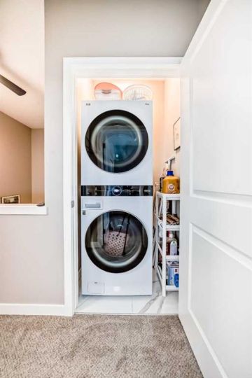 Dishwasher, Electric Stove, Microwave Hood Fan, Refrigerator, Washer/Dryer Stacked, Window Coverings