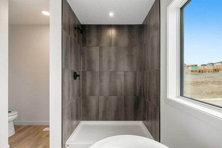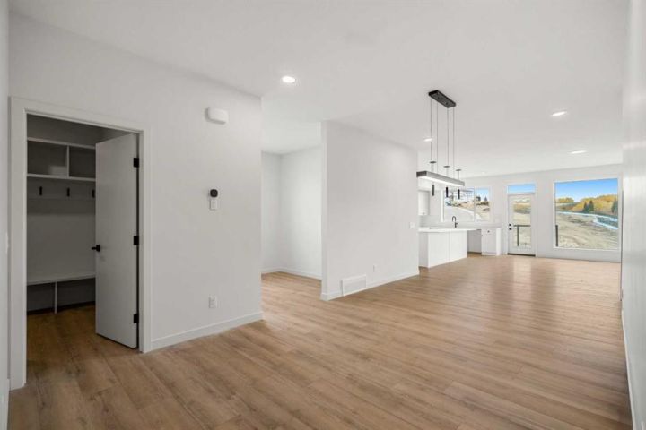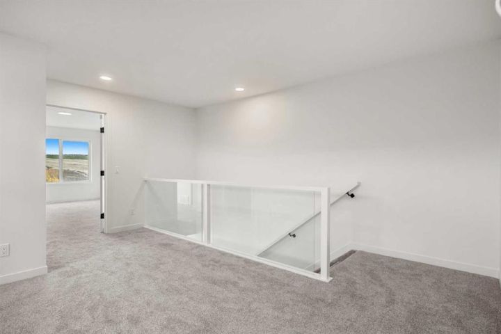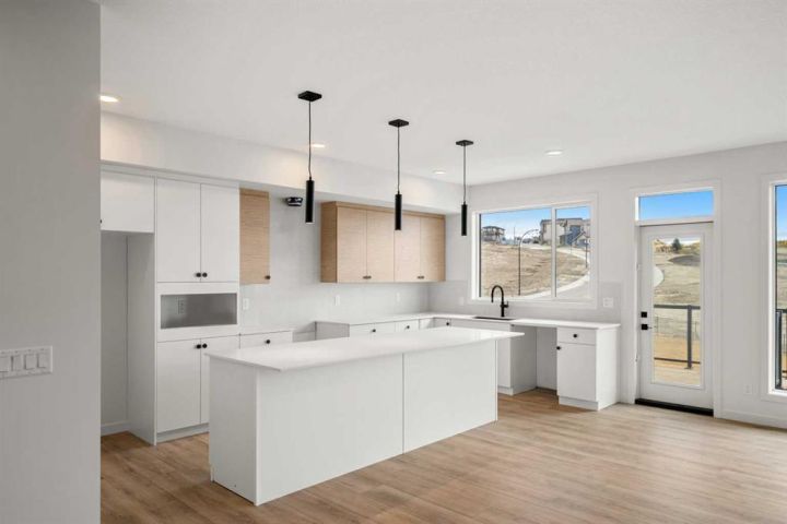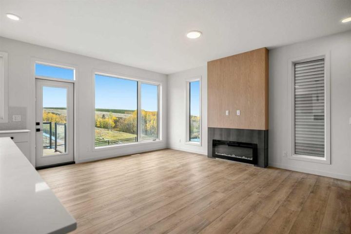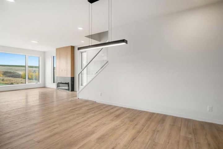 ***OPEN HOUSE Saturday from 1pm to 3pm, Visit the Showhome for Access*** Welcome to this Beautifully Designed Home created for modern family living. The spacious dining area comfortably seats 12 OR MORE PEOPLE, providing the perfect setting for both intimate dinners and large family gatherings. The thoughtfully designed kitchen invites shared meal preparation, turning everyday cooking into an enjoyable experience at the heart of the home. A versatile MAIN-FLOOR DEN offers flexibility and can be easily transformed into a dedicated homework area or a welcoming guest room. Upstairs, two generously sized bedrooms provide quiet retreats ideal for study or relaxation. The expansive PRIMARY BEDROOM serves as a private sanctuary, offering a peaceful escape where self-care takes center stage. This home is filled with impressive details, including sleek HORIZONTAL ALUMINUM RAILINGS WITH CLEAR GLASS, an elegant ELECTRIC FIREPLACE that anchors the living space, SOARING 9FT FOUNDATIONS, and a desirable location BACKING ONTO THE ENVIRONMENTAL RESERVE. Every Cantiro Home is equipped with modern comfort and efficiency in mind, featuring a TANKLESS WATER HEATER, TRIPLE PANE WINDOWS, and SMART HOME FEATURES such as a SMART THERMOSTAT, DOORBELL CAMERA, KEYLESS DOOR LOCK, and WIFI-CONNECTED GARAGE DOOR OPENER. The West Hawk community is thoughtfully designed around 27 ACRES OF SLOPING ENVIRONMENTAL RESERVE, preserving native wildlife habitats while offering residents scenic viewpoints, rest areas, and a network of WALKING TRAILS AND RAVINE CROSSINGS. These natural features are integrated into Bike Cochrane’s exclusive bike network, providing residents with seamless access to the outdoors. Future community enhancements in Phases 2 and 3 include an OFF-LEASH DOG PARK and a PLAYGROUND, both expected to be completed by early fall 2025. Over 50% of the homes in West Hawk are strategically positioned to back onto key amenities such as the Environmental Reserve Ridge, the future dog park in the northeastern corner, and the planned Tot Lot along Heritage Boulevard. A FUTURE K–9 SCHOOL SITE will further enhance the family-friendly atmosphere and contribute to the exceptional quality of life for residents. Don't miss your chance to view this beauty today!