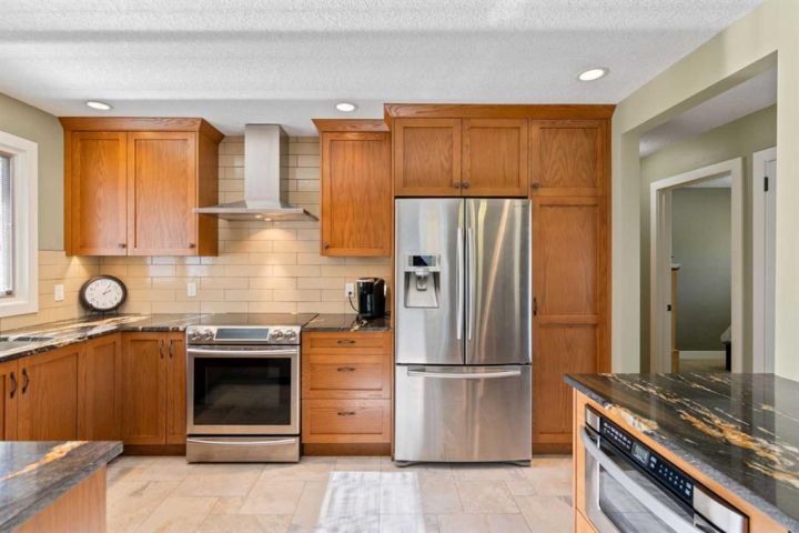 ** OPEN HOUSE ** Saturday October 11 2-4pm ** Welcome to this beautifully maintained, thoughtfully upgraded and expanded 4-bedroom, 2.5-bathroom bungalow nestled on a quiet crescent in the highly sought-after, family-friendly community of Bonavista Downs. This home stands apart from the rest with a rare and valuable 320+ sq. ft. family room addition—a feature not commonly found in the area that brings exceptional space, openness and flexibility to this home.. From the moment you arrive, it’s clear this property has been well cared for with pride of ownership. Every update has been completed with high quality craftsmanship and timeless design in mind, offering a clean and welcoming aesthetic that blends modern touches with enduring functionality. Main-floor interior doors, trim and baseboards are among some of the contemporary updates. Step inside to discover a warm and inviting layout that flows effortlessly from room to room. Hardwood floors, abundant natural light, large windows and a cozy central wood burning (with gas log lighter) fireplace sets the tone for comfort and everyday living. The spacious kitchen is equipped with updated higher-end cabinetry, granite countertops, large island, custom pull outs, updated title work and quality appliances makes the space very functional with style. It flows into the dining room, living room and oversized family room—perfect for hosting family gatherings, movie nights, or simply relaxing in a space designed to accommodate real life. The main floor also includes three well-proportioned bedrooms, including a primary suite with a private 2-piece ensuite, as well as a full 4-piece bath to serve the additional bedrooms. Majority of the windows have also been updated. Downstairs, the fully finished basement offers even more living space, complete with a fourth bedroom with large egress window, a 3-piece bathroom, a den/flex room, a large recreation/games area, laundry room, and versatile storage/utility area. A newer high efficiency furnace and upgraded wiring add to the value of this home. Step outside to your private backyard, mature trees, fully fenced yard ideal for children, pets, or summer entertaining. A oversized 24 x 24, double detached garage provides ample room for vehicles, bikes, and storage. The low-maintenance yard and mature landscaping offer a peaceful outdoor retreat. Location is everything—and this home delivers. Just steps from a community off-leash dog park, ball diamond, playground, beautiful walking paths, and minutes to bike pathway system. You will enjoy immediate access to outdoor amenities while remaining close to schools, shopping, and major roadways. Bonavista Downs is known for its welcoming atmosphere, strong community ties, and quiet streets—a true gem for families or anyone looking to enjoy a connected and comfortable lifestyle. If you’ve been searching for a bungalow that offers more space, more value, and more peace of mind, don’t miss your chance to view this exceptional home.