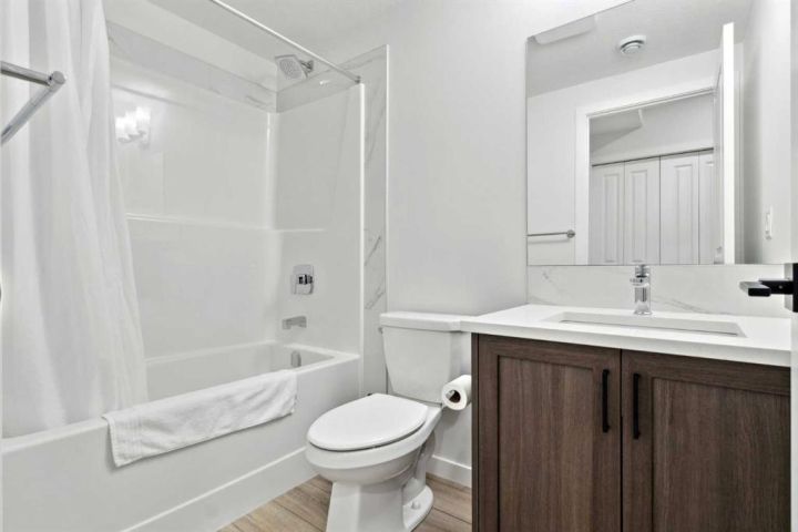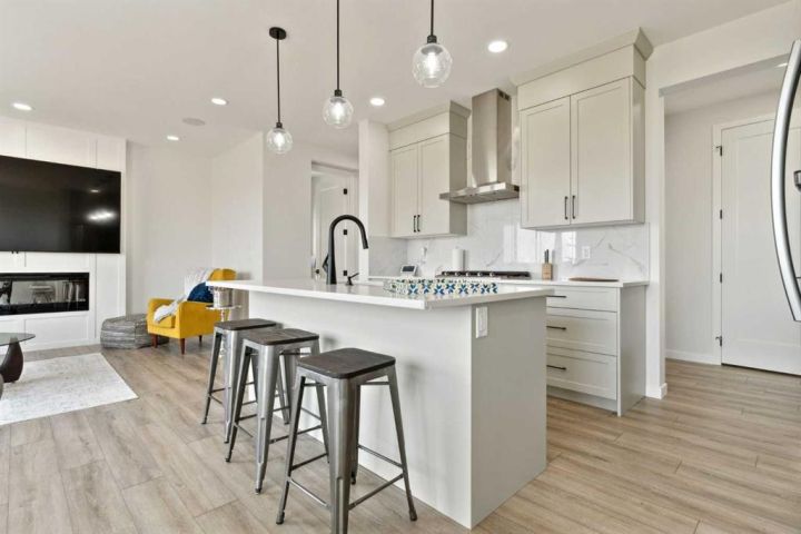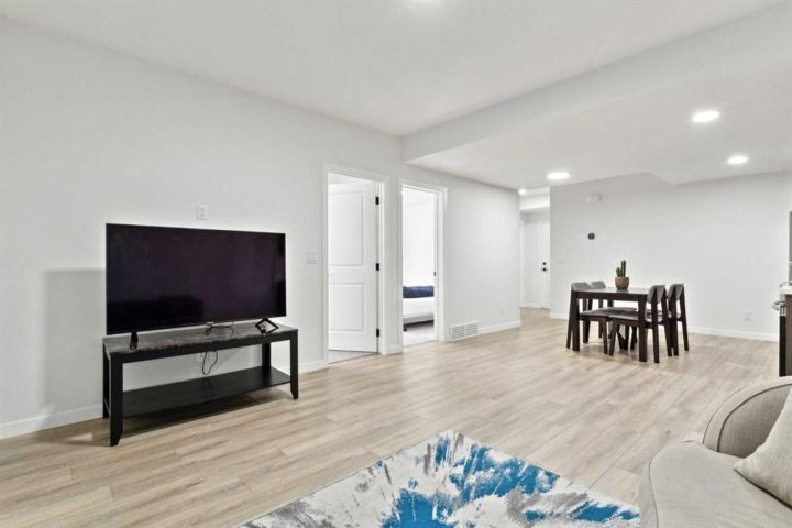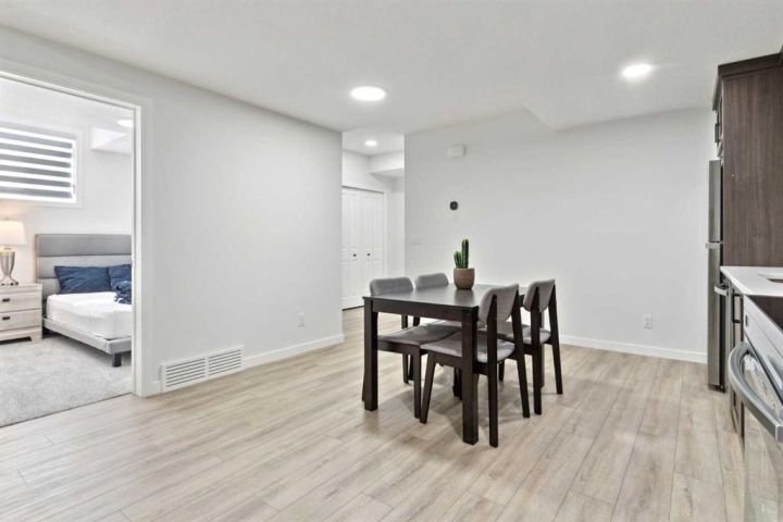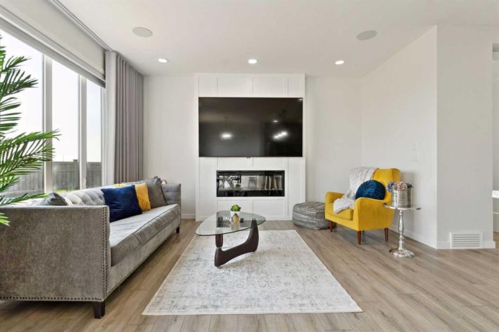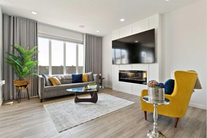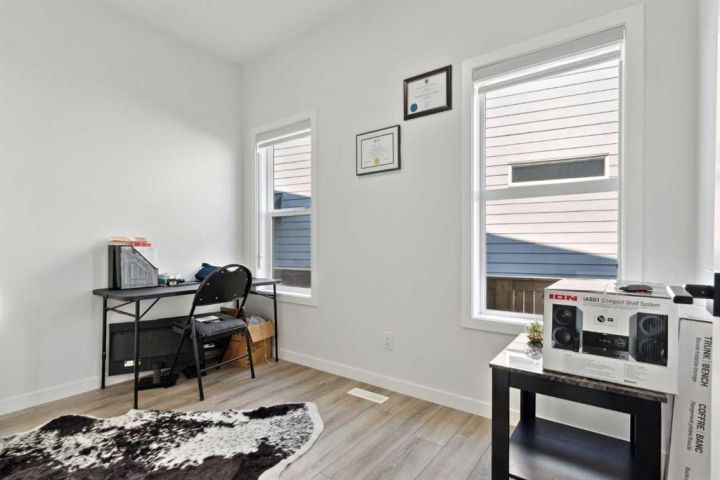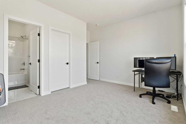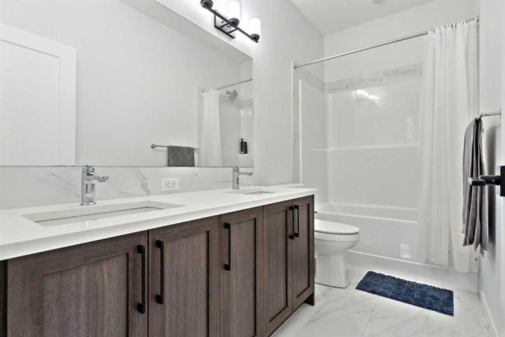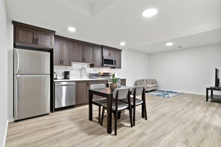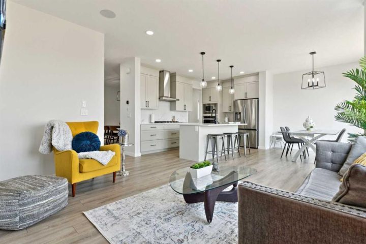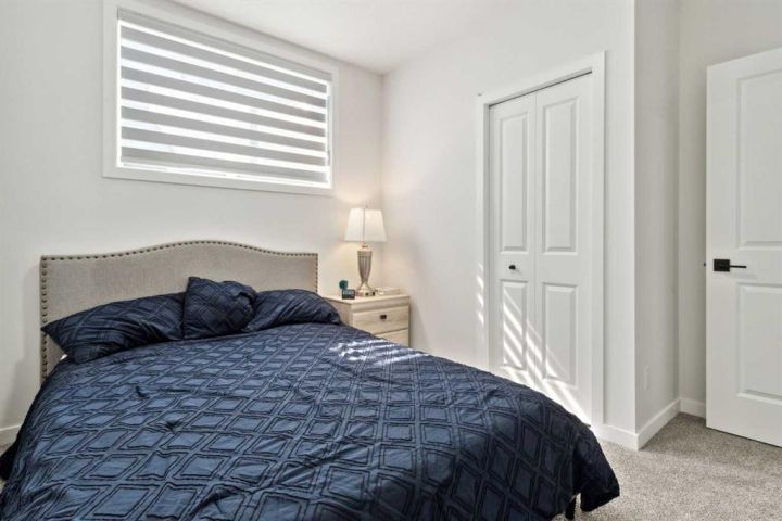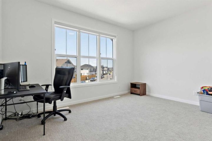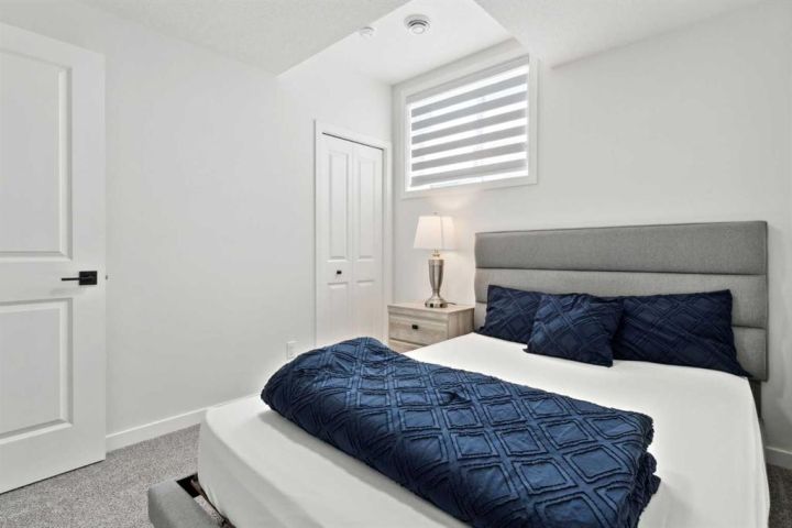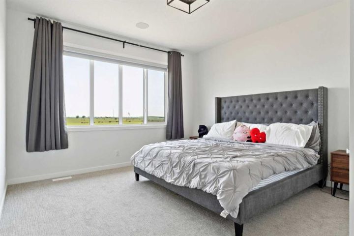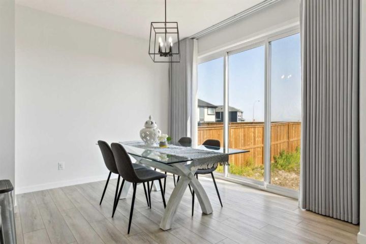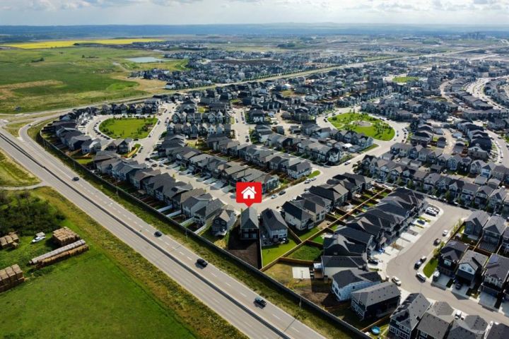 This exceptional EXECUTIVE RESIDENCE is virtually brand new and nestled on one of the largest PIE-SHAPED lots in Mahogany, offering unmatched privacy with NO REAR NEIGHBOURS. Built by Excel Homes, the Hawthorne model delivers a thoughtful, modern floor plan that’s ideal for both everyday living and entertaining. Inside, the home is FLOODED WITH NATURAL LIGHT through expansive windows and enhanced by CUSTOM window coverings throughout. Boasting 6 bedrooms and 4.5 bathrooms, this home is perfectly suited for large or multi-generational families. The lower level has been developed as a 2 bedroom LEGAL suite - fully accessible from the main floor as well. The main level features LUXURY VINYL PLANK flooring, a LARGE foyer adjacent to a mudroom with pocket door access from the garage. A SPACIOUS dining area is complemented by an adjacent PRIVATE OFFICE/DEN. The bright, open-concept living room includes a sleek ELECTRIC fireplace. The gourmet kitchen is stylish, a CHEF'S DREAM, equipped with upgraded appliances, a gas cooktop, built-in oven and microwave, soft-close cabinetry, quartz countertops, a walk-in pantry, and a substantial quartz island with extra seating. A spacious dining nook comfortably fits a table for ten and overlooks the MASSIVE backyard, already partially fenced and awaiting final grading by the builder. A stylish half bath completes the main floor. Upstairs, the bonus room with vaulted ceiling offers additional living space alongside four generously sized bedrooms—each with walk-in closets. Two of the bedrooms feature private ensuites, including the luxurious master retreat, complete with double vanity, soaker tub, separate shower and spacious walk in closet. A main bathroom with dual vanities completes the upper level.  The professionally developed lower level, finished by the builder, includes a LEGAL two-bedroom suite—ideal for rental income, extended family, or additional living space. It features its own KITCHEN, family room, bathroom, laundry room and a private side entrance. Currently set up as a short-term rental, this space offers great versatility. Located in Mahogany, one of Calgary’s most desirable lake communities, this home grants access to a 64-acre lake with year-round recreation (swimming, boating, fishing, skating, etc), 74 acres of wetlands, 22 kilometers of pathways, and nearby urban village amenities, schools, easy access to major transportation routes. With tranquil views of a neighboring farmer’s field, this rare property blends luxury, space, and serenity in an UNBEATABLE location. Home is under the Certified New Home Warranty Program with 1 year walkthrough with builder in March 2026.
