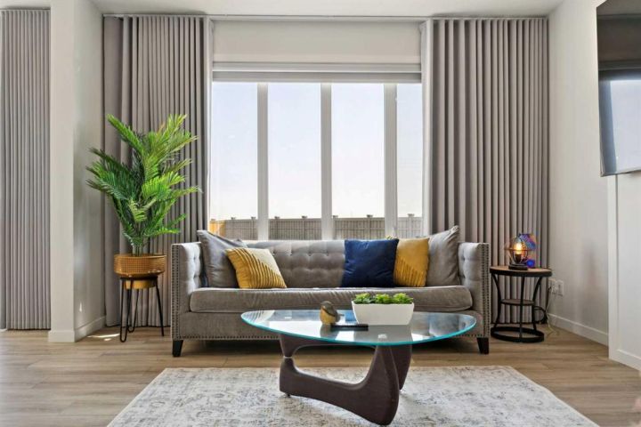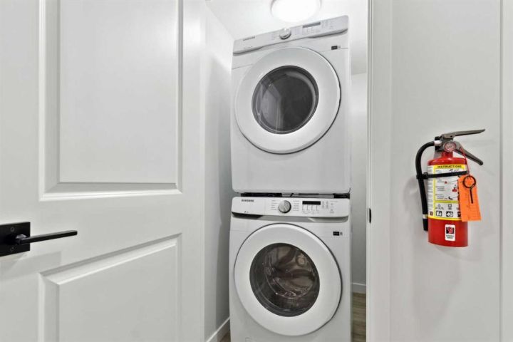 Dishwasher, Gas Cooktop, Microwave, Oven-Built-In, Range Hood, Refrigerator, Washer/Dryer Stacked, Window Coverings
