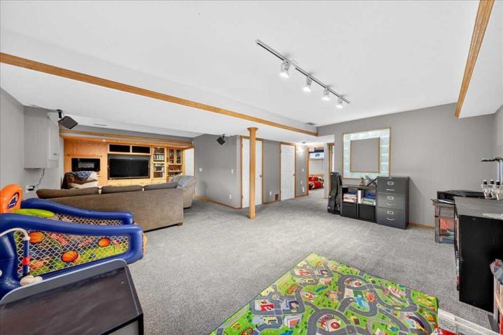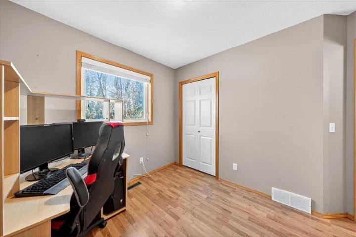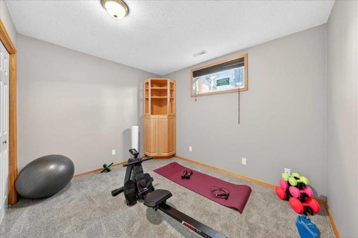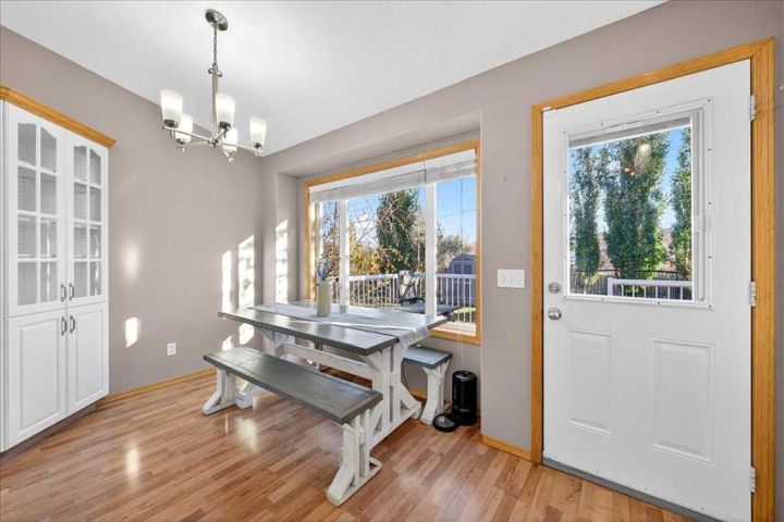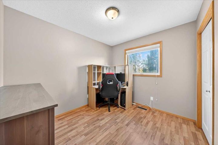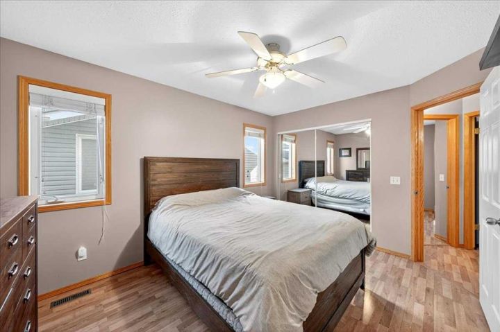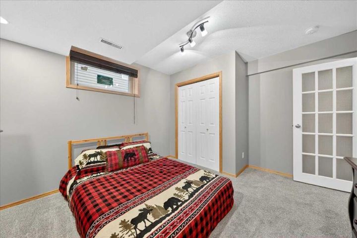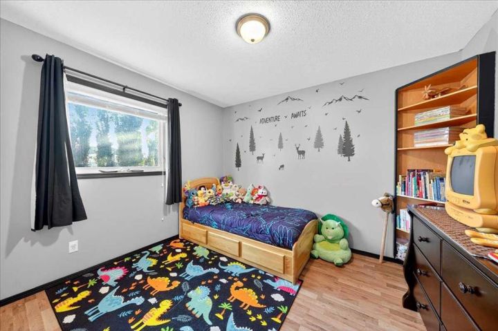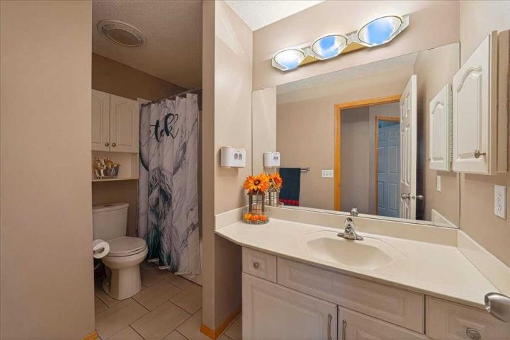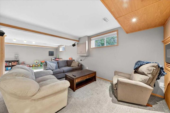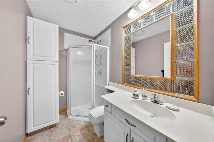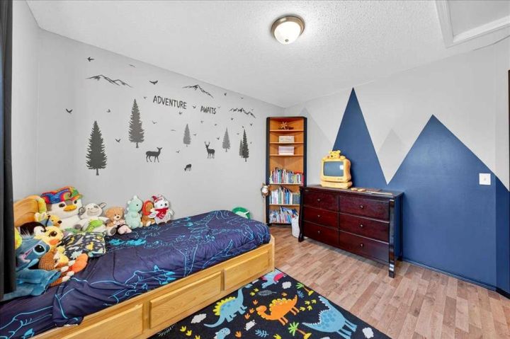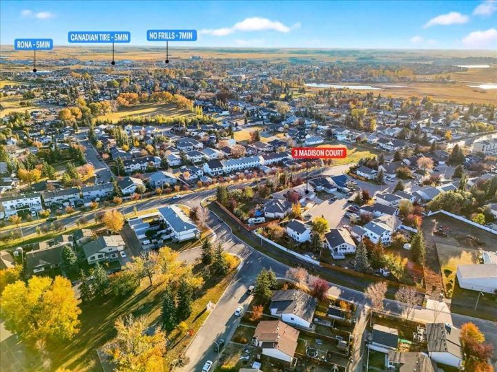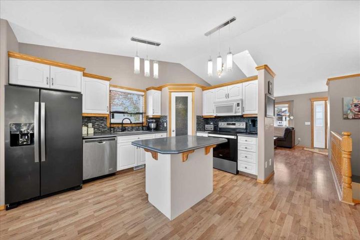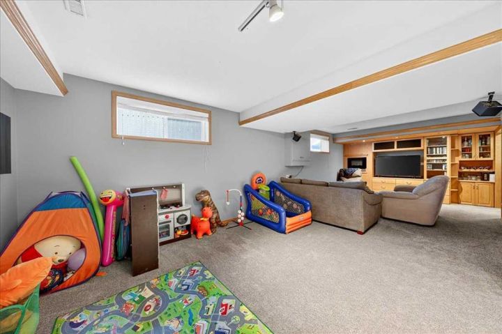 Charming 5-Bedroom Bungalow in Strathmore – Quiet Cul-de-Sac Location!?? PLEASE CHECK OUT THE VIRTUAL TOUR! Welcome home to this classic 5-bedroom, 3-bath bungalow nestled on a beautifully landscaped lot in the heart of Maplewood. Tucked away on a peaceful cul-de-sac, this home offers the perfect blend of comfort, style, and convenience. Step inside to discover vaulted ceilings and a sun-filled living room with a cozy corner fireplace and skylight that fills the space with natural light. The bright, open kitchen features timeless white cabinetry with crown molding, a corner pantry, solid surface countertops, and extra custom built-in cabinetry—ideal for storage and entertaining. From the dining area, patio doors lead to the back deck overlooking the private yard. The main floor offers three bedrooms, including a spacious primary suite with a 3-piece ensuite, plus a 4-piece main bath for family or guests. The fully finished lower level is perfect for relaxing or entertaining, featuring a large family room with built-in entertainment center, surround-sound system, plush carpeting, two additional bedrooms, and another 3-piece bath.